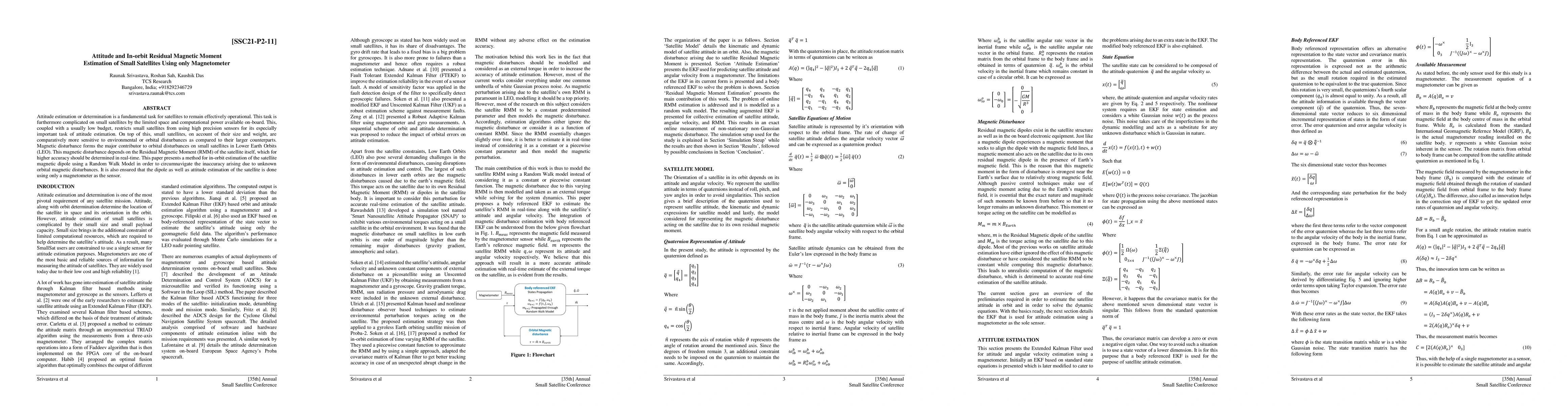 This paper proposes a method for estimating the attitude and residual magnetic moment of small satellites using only a magnetometer, addressing the challenges of limited onboard resources and magnetic disturbances in Low Earth Orbits. The approach leverages a Random Walk Model to achieve real-time accuracy despite unknown orbital magnetic disturbances.