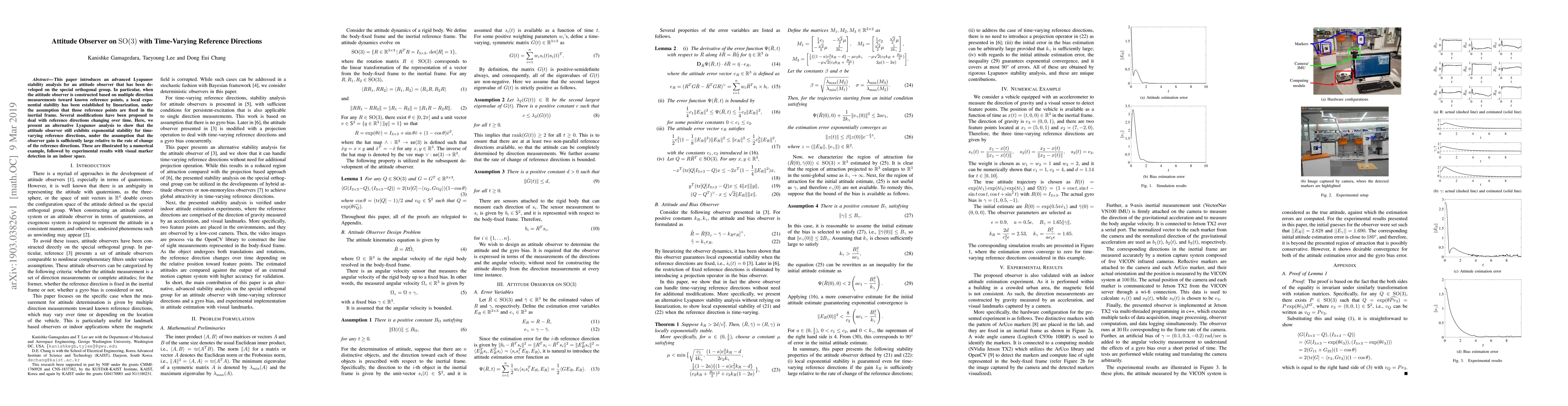The paper shows that an attitude observer can maintain exponential stability even when reference directions change over time, as long as the observer gain is sufficiently large.