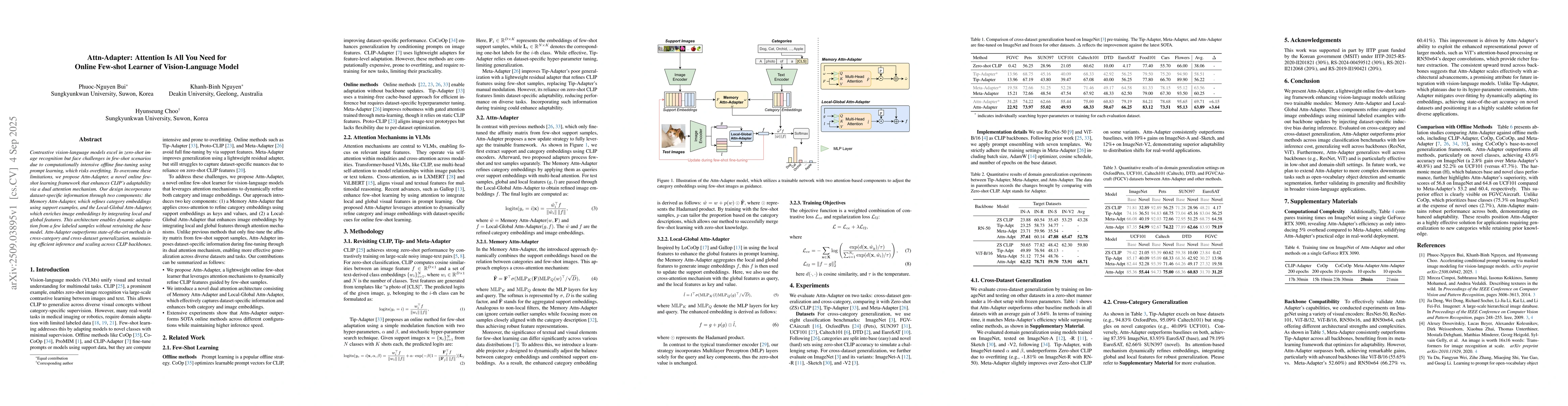 Contrastive vision-language models excel in zero-shot image recognition but face challenges in few-shot scenarios due to computationally intensive offline fine-tuning using prompt learning, which risks overfitting. To overcome these limitations, we propose Attn-Adapter, a novel online few-shot learning framework that enhances CLIP's adaptability via a dual attention mechanism. Our design incorporates dataset-specific information through two components: the Memory Attn-Adapter, which refines category embeddings using support examples, and the Local-Global Attn-Adapter, which enriches image embeddings by integrating local and global features. This architecture enables dynamic adaptation from a few labeled samples without retraining the base model. Attn-Adapter outperforms state-of-the-art methods in cross-category and cross-dataset generalization, maintaining efficient inference and scaling across CLIP backbones.