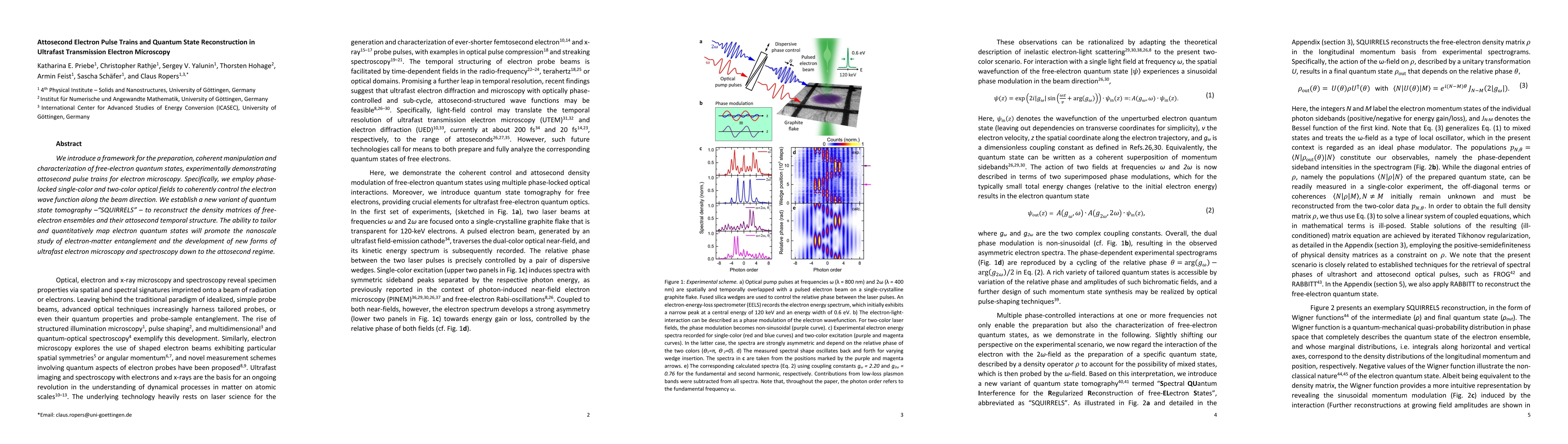 This paper introduces a method for generating and manipulating attosecond electron pulse trains using phase-locked optical fields, and proposes a new quantum state tomography technique called "SQUIRRELS" to reconstruct the density matrices of free-electron ensembles, enabling advanced ultrafast electron microscopy and spectroscopy.