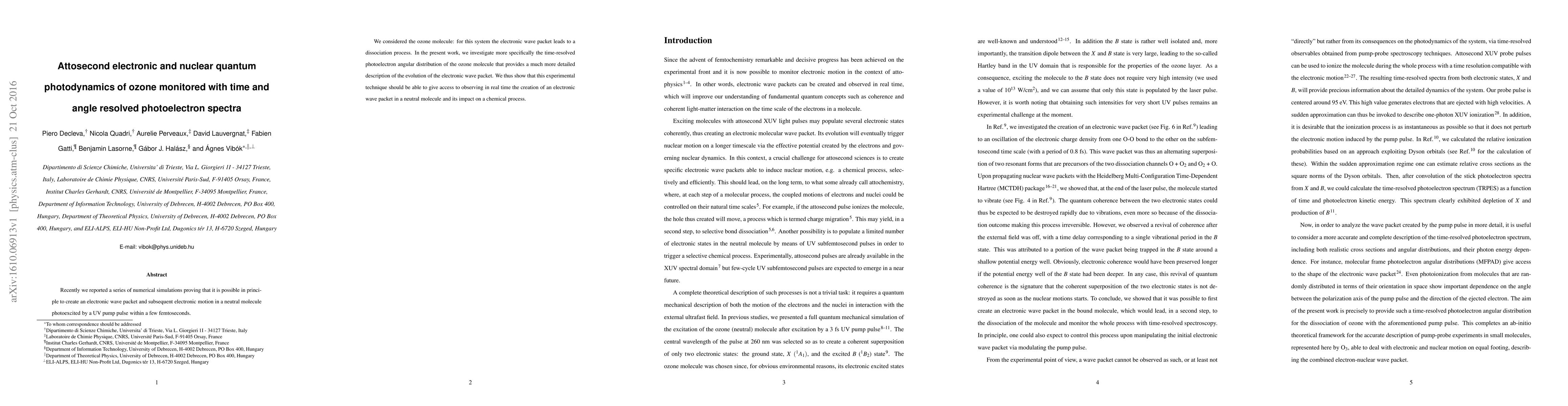 This research investigates the time-resolved photoelectron angular distribution of ozone molecules to detail the evolution of an electronic wave packet created by a UV pump pulse. The study demonstrates that this technique can provide real-time observation of the wave packet's formation and its effect on the molecule's dissociation process.