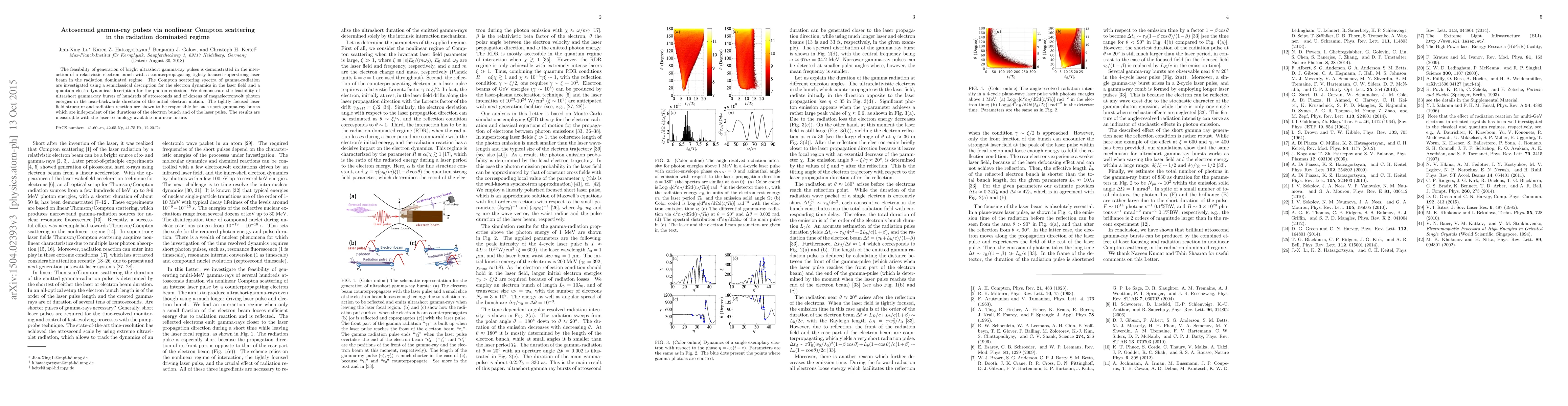This paper demonstrates the generation of ultrashort, bright gamma-ray bursts via nonlinear Compton scattering in a radiation-dominated regime, using a relativistic electron bunch and a counterpropagating superstrong laser beam. The study shows that such gamma-ray pulses can be as short as hundreds of attoseconds and possess energies up to dozens of megaelectronvolts.