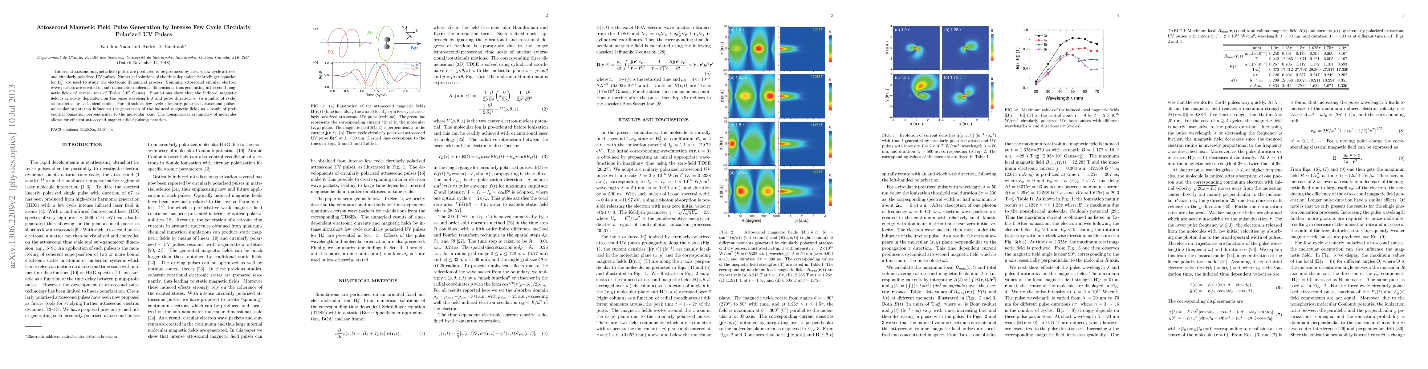 This paper predicts the generation of intense attosecond magnetic field pulses via intense few cycle circularly polarized UV pulses. The study uses numerical solutions of the time-dependent Schrödinger equation to demonstrate the creation of spiraling attosecond electron wave packets that produce magnetic fields up to several tens of Teslas.
