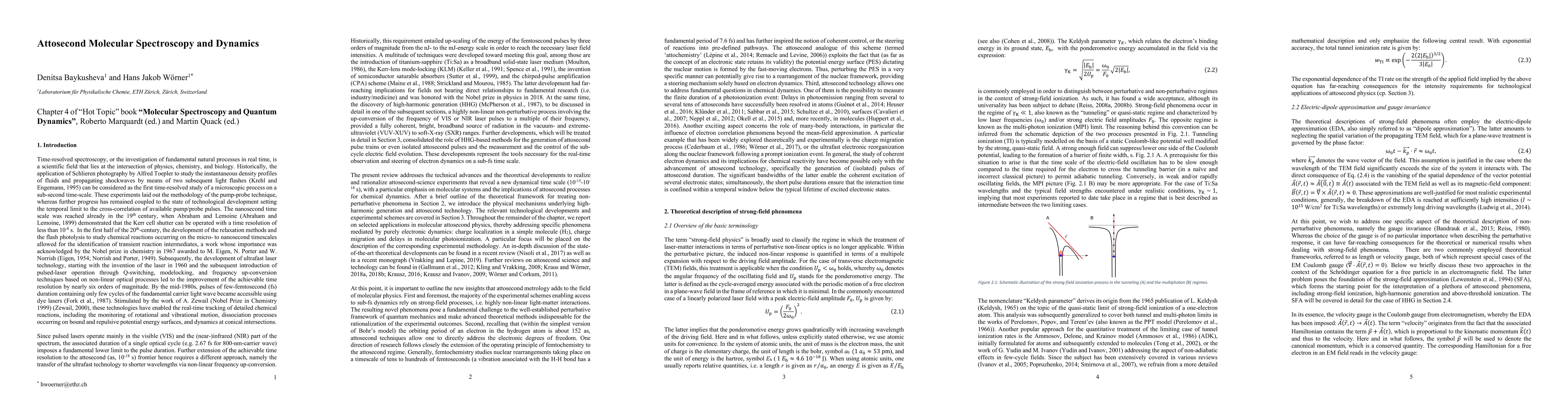 This review discusses attosecond molecular spectroscopy and dynamics, revealing a new time scale for chemical reactions, and explores its applications in understanding phenomena like charge migration and high-harmonic spectroscopy.