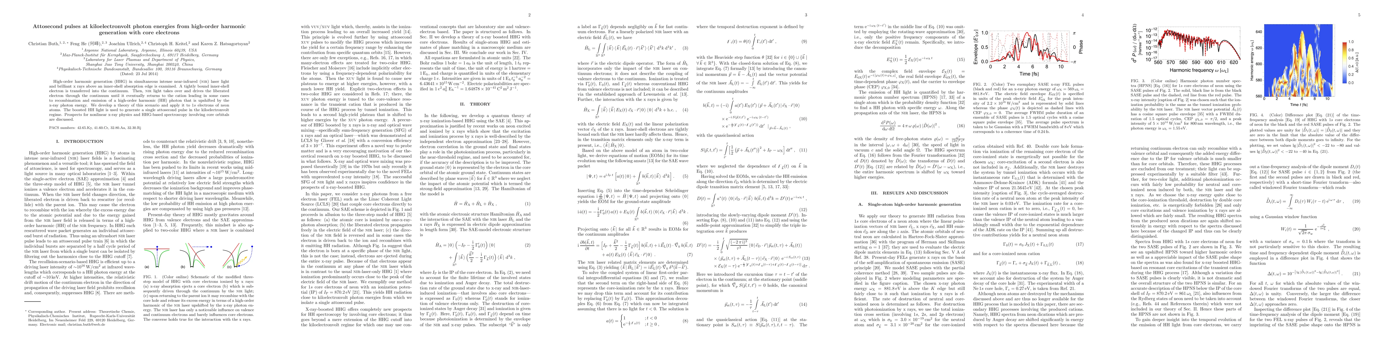 The paper presents a theory for high-order harmonic generation using core electrons excited by x-rays, leading to attosecond pulse generation in the kiloelectronvolt regime.