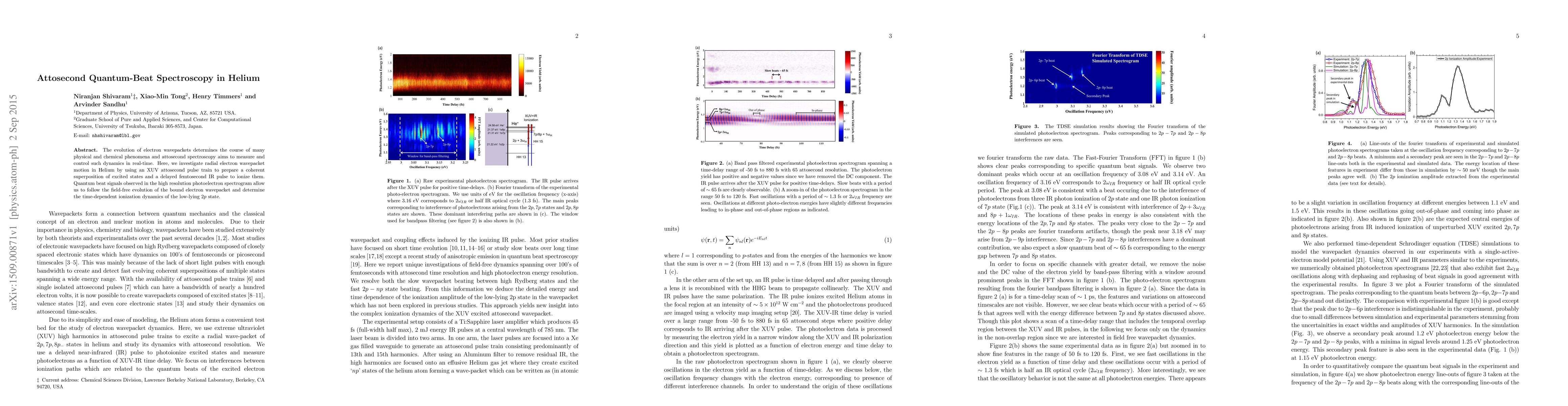 This study employs attosecond quantum-beat spectroscopy to monitor the radial motion of electron wavepackets in Helium, using an XUV pulse train and a delayed femtosecond IR pulse to track the field-free evolution and ionization dynamics of the 2p state through quantum beat signals in photoelectron spectra.