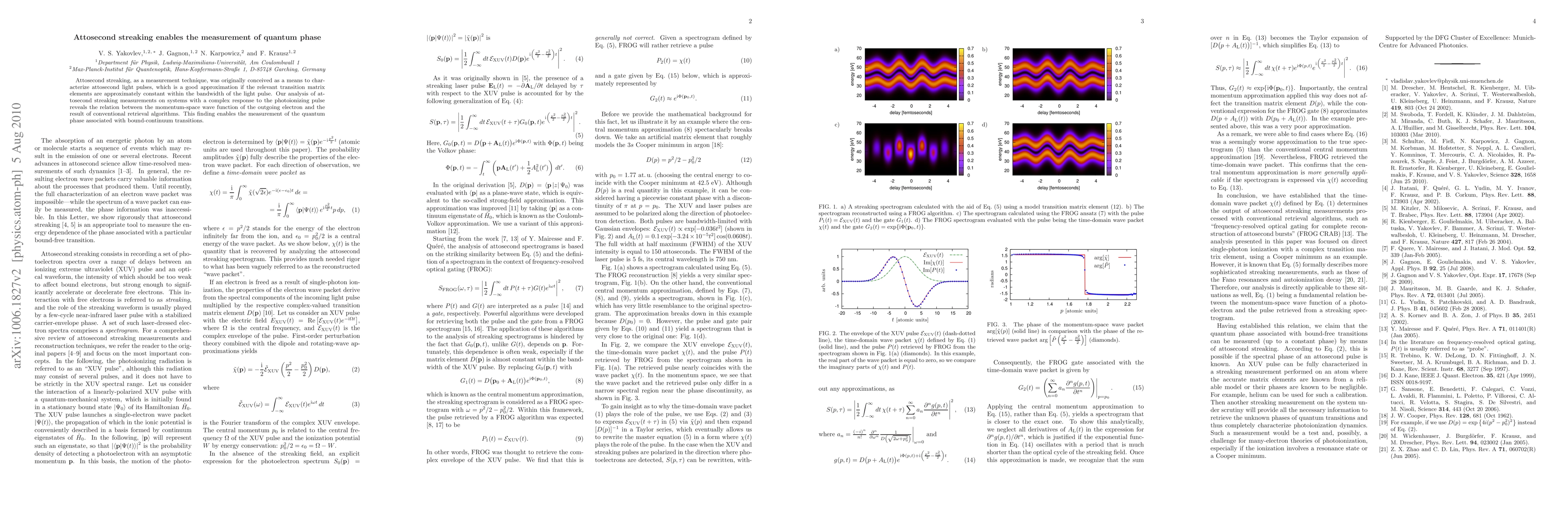Attosecond streaking allows for the measurement of quantum phase by linking the momentum-space wave function of outgoing electrons to the results of conventional retrieval algorithms, even in systems with complex responses to photoionizing pulses. This technique enables the characterization of bound-continuum transition matrix elements.