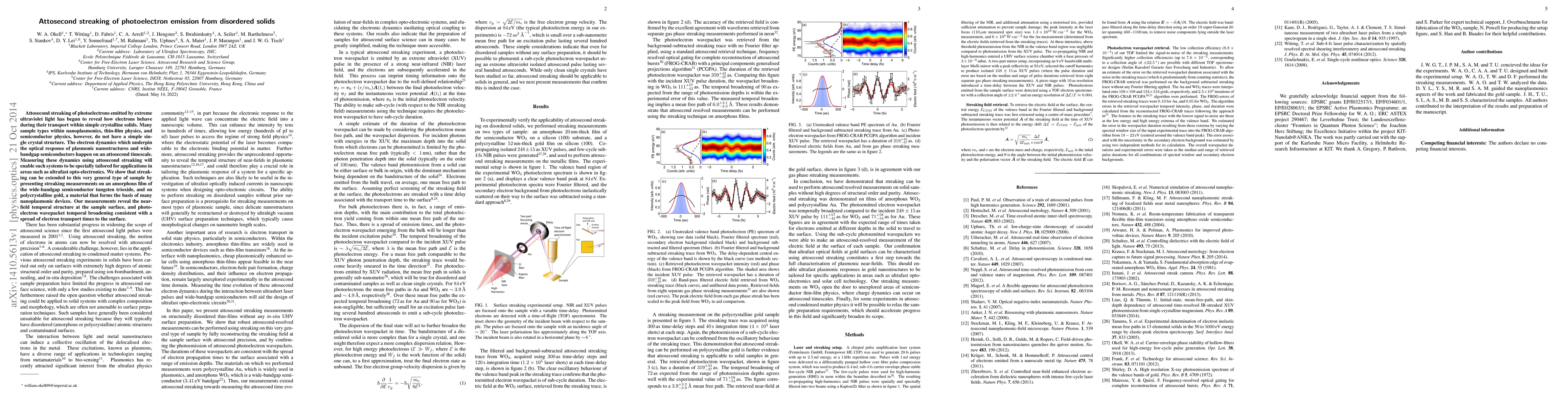 This paper demonstrates the extension of attosecond streaking to disordered solids, such as amorphous tungsten trioxide and polycrystalline gold, to reveal electron dynamics on an attosecond timescale. The measurements provide insights into the near-field temporal structure and photoelectron wavepacket broadening, indicating varied electron transport times.