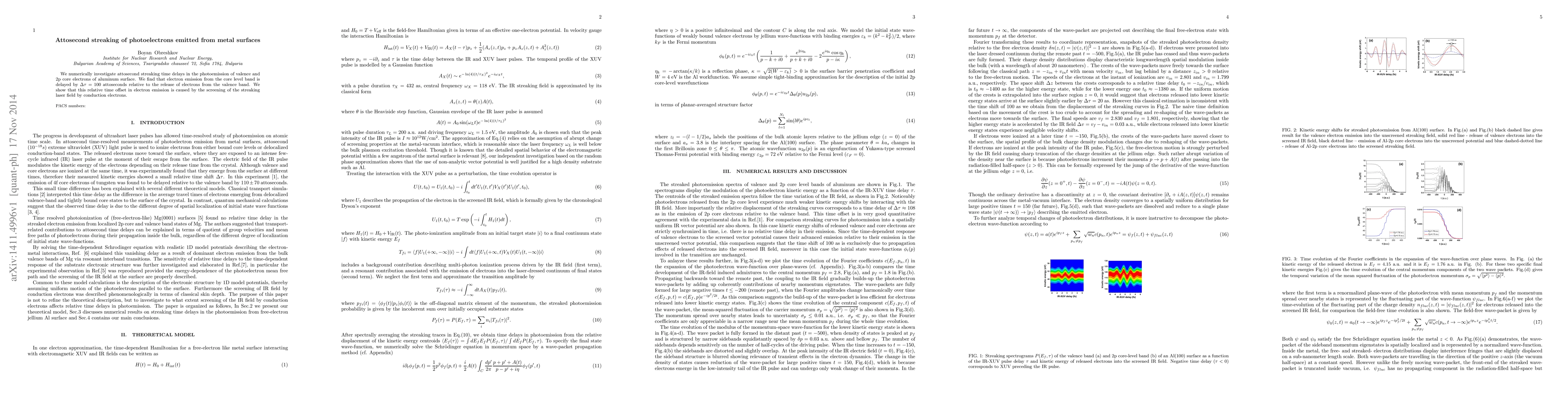 Summary: This study numerically investigates attosecond delays in photoelectron emission from aluminum surfaces, revealing a 100 attosecond delay for core electrons compared to valence electrons, attributed to the screening effect of conduction electrons on the streaking laser field.