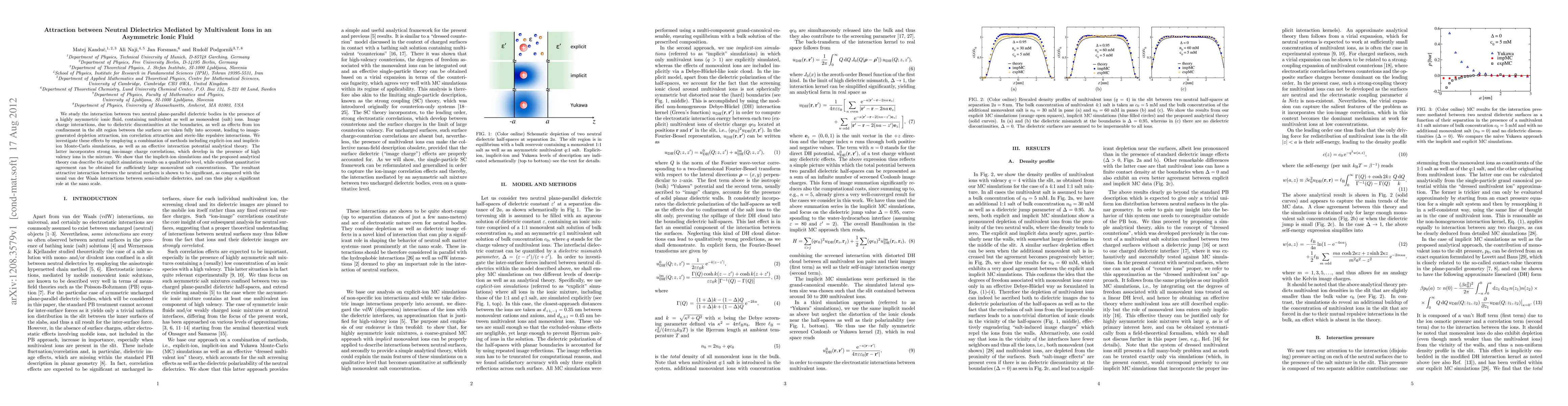 This paper investigates the interaction between neutral dielectric bodies in an asymmetric ionic fluid, revealing significant attraction due to multivalent ions, image charge effects, and ion confinement. The study combines Monte-Carlo simulations and analytical theory to demonstrate the importance of these interactions at the nanoscale.