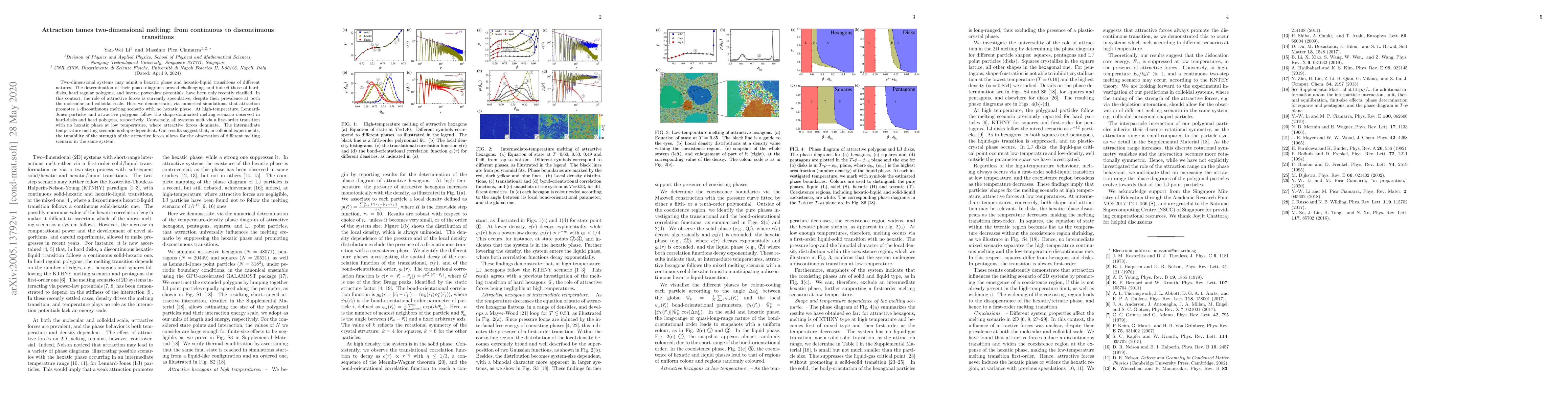 This paper demonstrates that attractive forces in two-dimensional systems lead to a discontinuous melting transition, eliminating the hexatic phase. At low temperatures, attraction causes a first-order transition, while at high temperatures, melting follows a shape-dominated scenario akin to hard-disks or polygons.