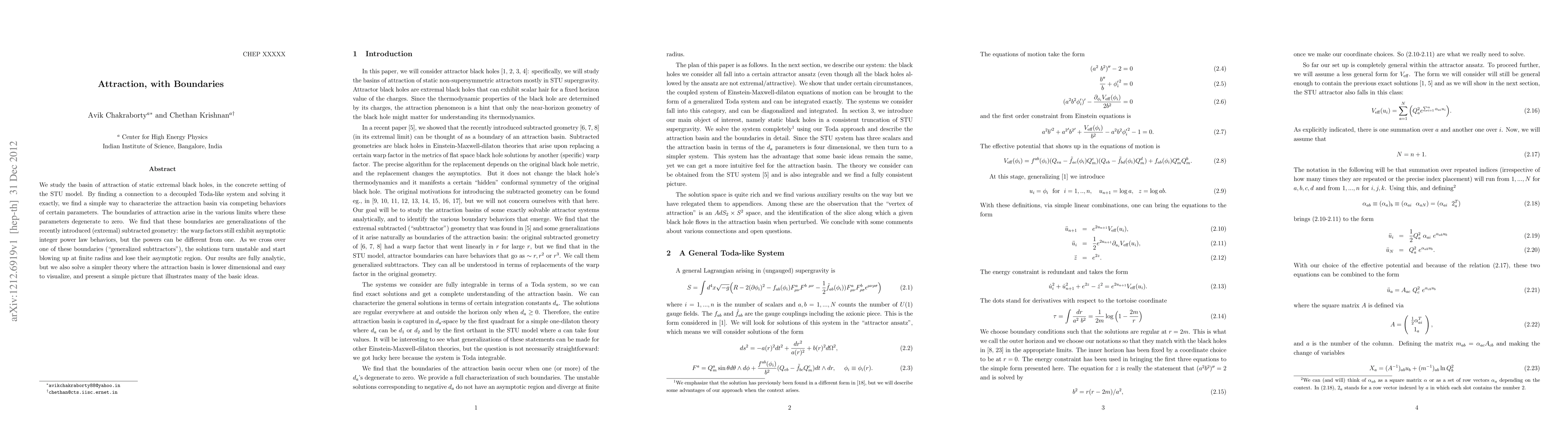 Researchers studied the area of attraction for static extremal black holes in the STU model, finding that boundaries of attraction appear when certain parameters degenerate to zero, marking a generalization of subtracted geometry.