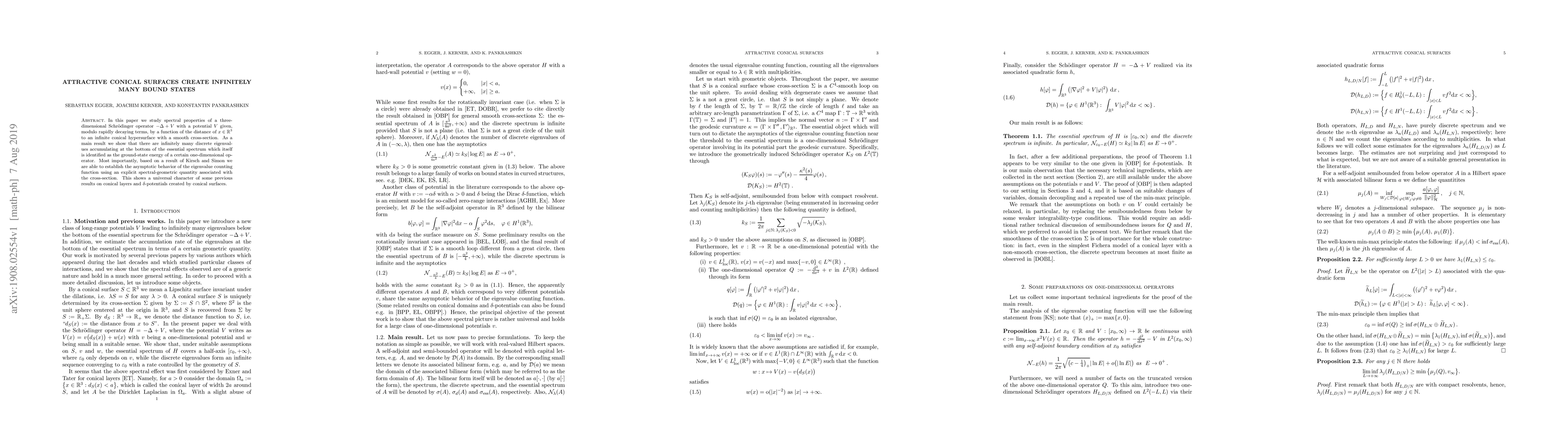 In this paper we study spectral properties of a three-dimensional Schr\"odinger operator $-\Delta+V$ with a potential $V$ given, modulo rapidly decaying terms, by a function of the distance of $x \in \mathbb{R}^3$ to an infinite conical hypersurface with a smooth cross-section. As a main result we show that there are infinitely many discrete eigenvalues accumulating at the bottom of the essential spectrum which itself is identified as the ground-state energy of a certain one-dimensional operator. Most importantly, based on a result of Kirsch and Simon we are able to establish the asymptotic behavior of the eigenvalue counting function using an explicit spectral-geometric quantity associated with the cross-section. This shows a universal character of some previous results on conical layers and $\delta$-potentials created by conical surfaces.