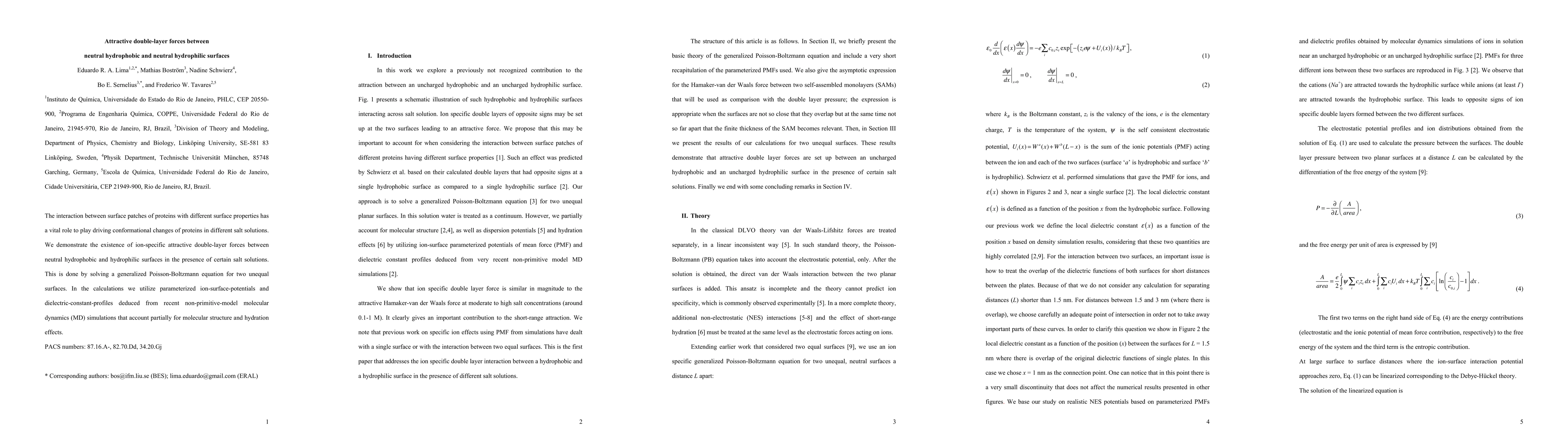 The interaction between surface patches of proteins with different surface properties has a vital role to play driving conformational changes of proteins in different salt solutions. We demonstrate the existence of ion-specific attractive double-layer forces between neutral hydrophobic and hydrophilic surfaces in the presence of certain salt solutions. This is done by solving a generalized Poisson-Boltzmann equation for two unequal surfaces. In the calculations we utilize parameterized ion-surface-potentials and dielectric-constant-profiles deduced from recent non-primitive-model molecular dynamics (MD) simulations that account partially for molecular structure and hydration effects.