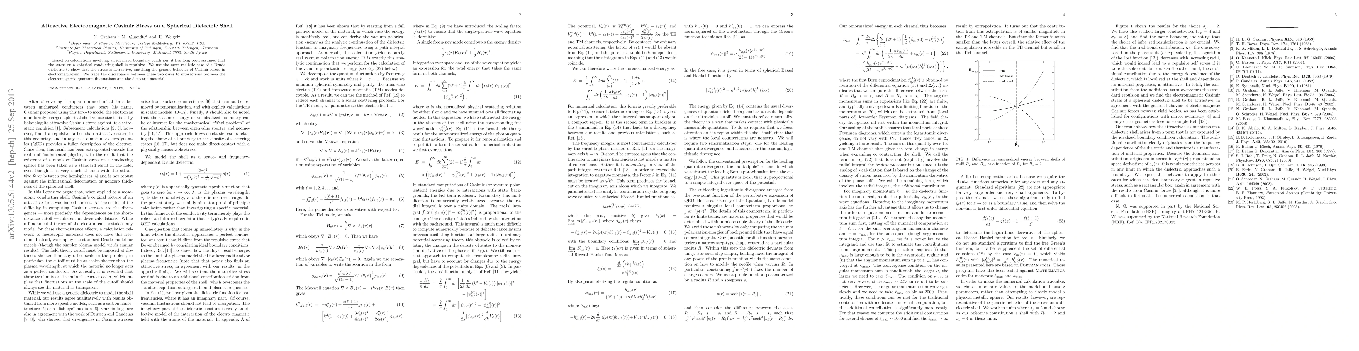 This paper demonstrates that the electromagnetic Casimir stress on a spherical Drude dielectric shell is attractive, contrary to the long-held belief of repulsive stress on a conducting shell, due to interactions between quantum electromagnetic fluctuations and the dielectric material.