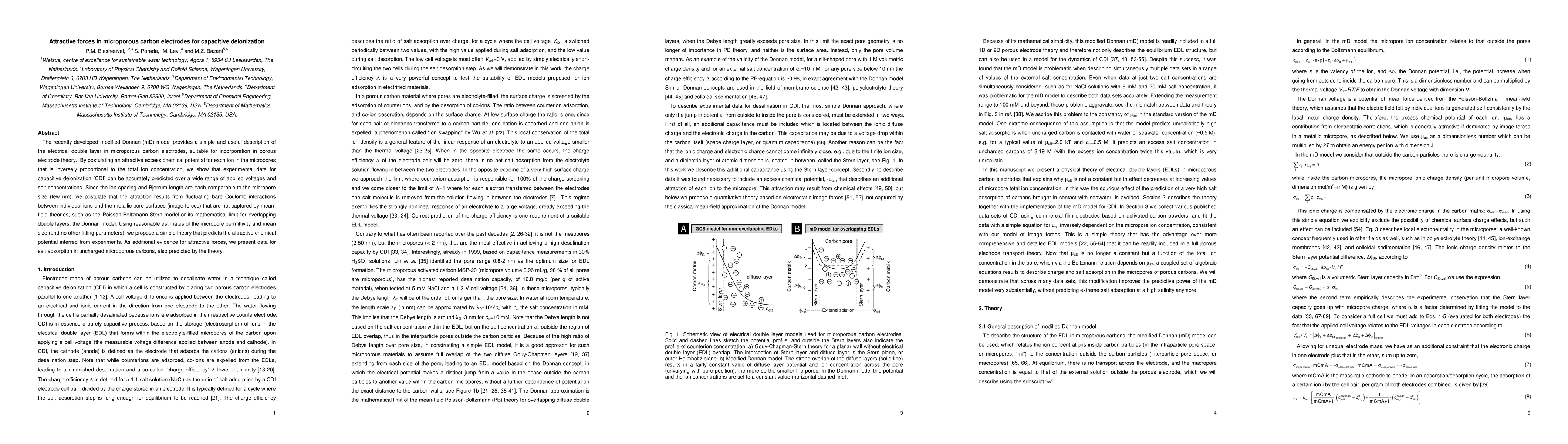 The modified Donnan model accurately predicts capacitive deionization data using an attractive excess chemical potential inversely proportional to ion concentration, attributed to fluctuating Coulomb interactions between ions and pore surfaces. The theory, requiring only micropore permittivity and size estimates, also explains salt adsorption in uncharged microporous carbons.