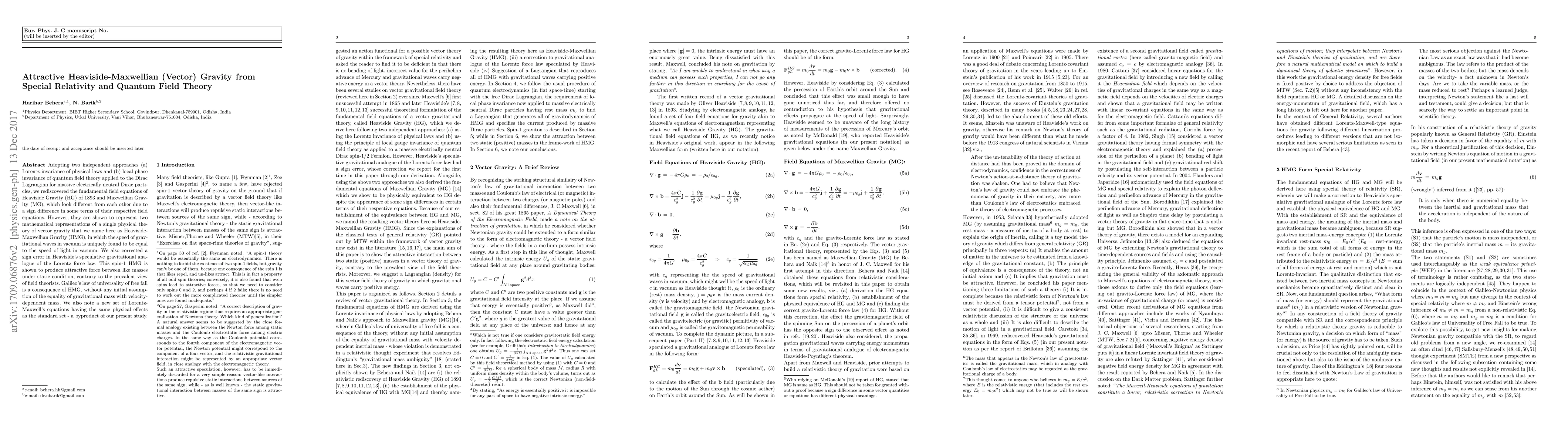 Adopting two independent approaches (a) Lorentz-invariance of physical laws and (b) local phase invariance of quantum field theory applied to the Dirac Lagrangian for massive electrically neutral Dirac particles, we rediscovered the fundamental field equations of Heaviside Gravity (HG) of 1893 and Maxwellian Gravity (MG), which look different from each other due to a sign difference in some terms of their respective field equations. However, they are shown to represent two mathematical representations of a single physical theory of vector gravity that we name here as Heaviside-Maxwellian Gravity (HMG), in which the speed of gravitational waves in vacuum is uniquely found to be equal to the speed of light in vacuum. We also corrected a sign error in Heaviside's speculative gravitational analogue of the Lorentz force law. This spin-1 HMG is shown to produce attractive force between like masses under static condition, contrary to the prevalent view of field theorists. Galileo's law of universality of free fall is a consequence of HMG, without any initial assumption of the equality of gravitational mass with velocity-dependent mass. We also note a new set of Lorentz-Maxwell's equations having the same physical effects as the standard set - a byproduct of our present study.