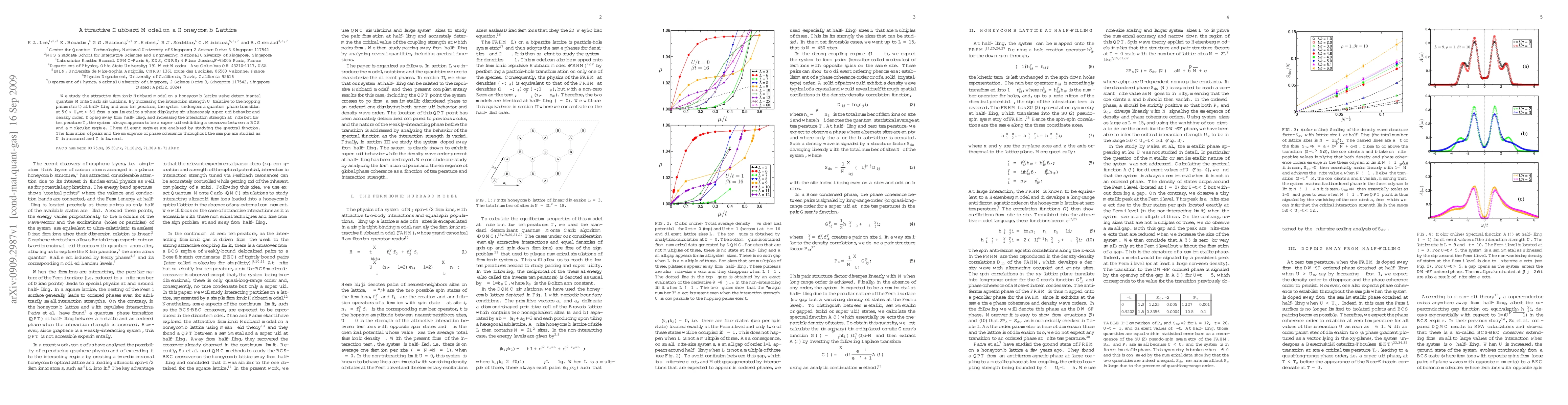 Researchers studied the attractive Hubbard model on a honeycomb lattice, discovering a phase transition from semi-metal to superfluid behavior with increasing interaction strength at half-filling and zero temperature. The system's behavior is characterized by a crossover between BCS and molecular regimes upon doping and cooling.