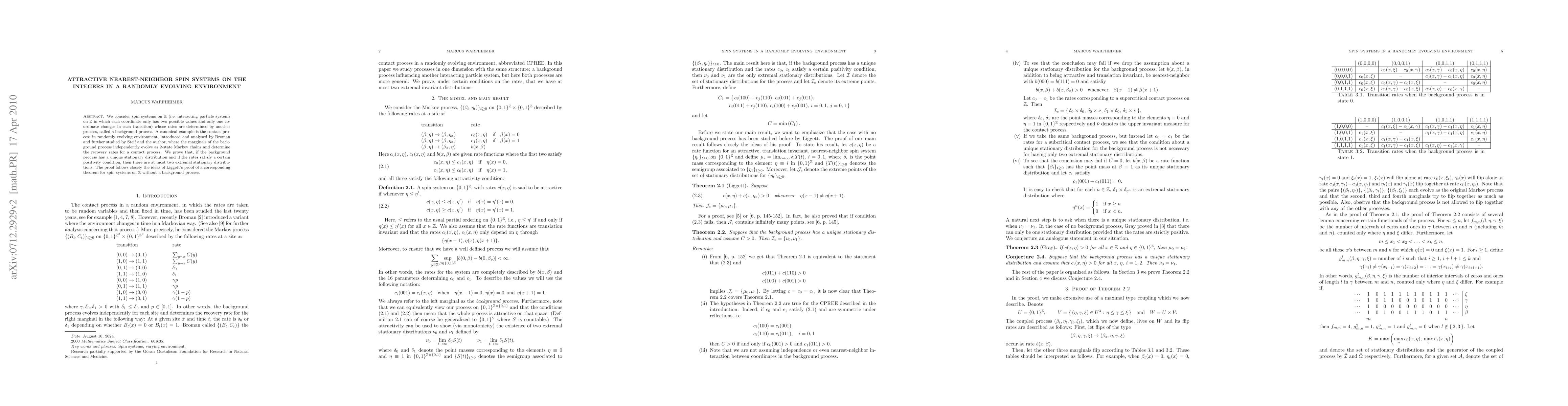 This research paper explores spin systems on integers with rates determined by a randomly evolving background process. It proves that under certain conditions, there are at most two extremal stationary distributions for these systems.