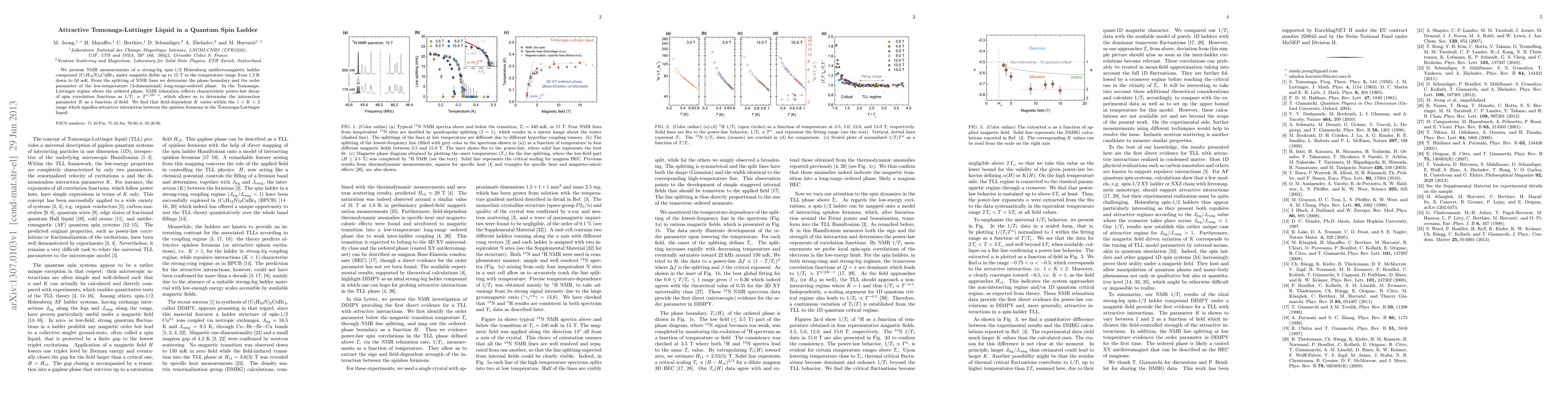 This paper reports NMR measurements of a quantum spin ladder compound, revealing a Tomonaga-Luttinger liquid with attractive interactions. The study finds that the interaction parameter K varies within 1<K<2, indicating an attractive interaction in the Tomonaga-Luttinger regime.