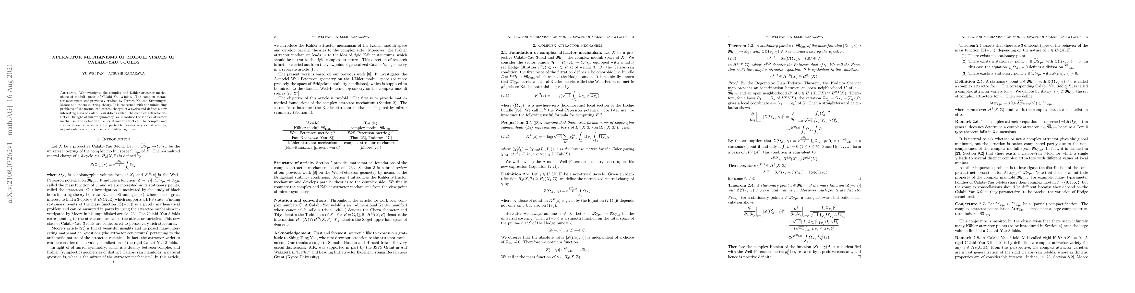 This paper explores the complex and Kähler attractor mechanisms in the moduli spaces of Calabi-Yau 3-folds, introducing new classes called complex and Kähler attractor varieties, which are expected to exhibit rich structures and rigidities.