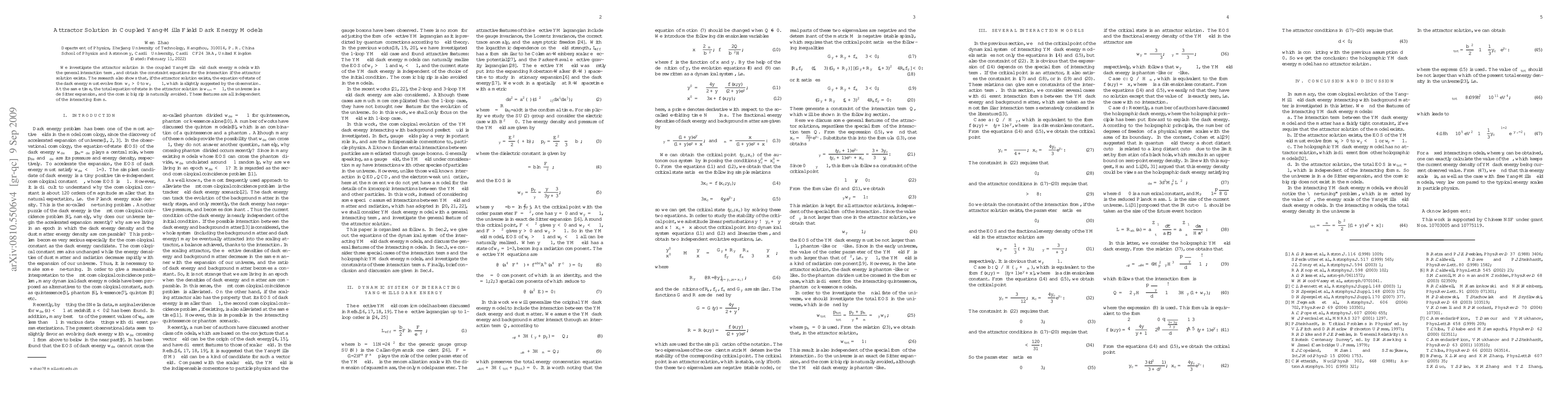 The study investigates attractor solutions in coupled Yang-Mills field dark energy models, finding that an existing solution leads to a universe with $w_{tot}=-1$ and avoids the cosmic big rip, while evolving from $w_y>0$ to $w_y o-1$. The findings imply that such solutions could be consistent with observations of dark energy.