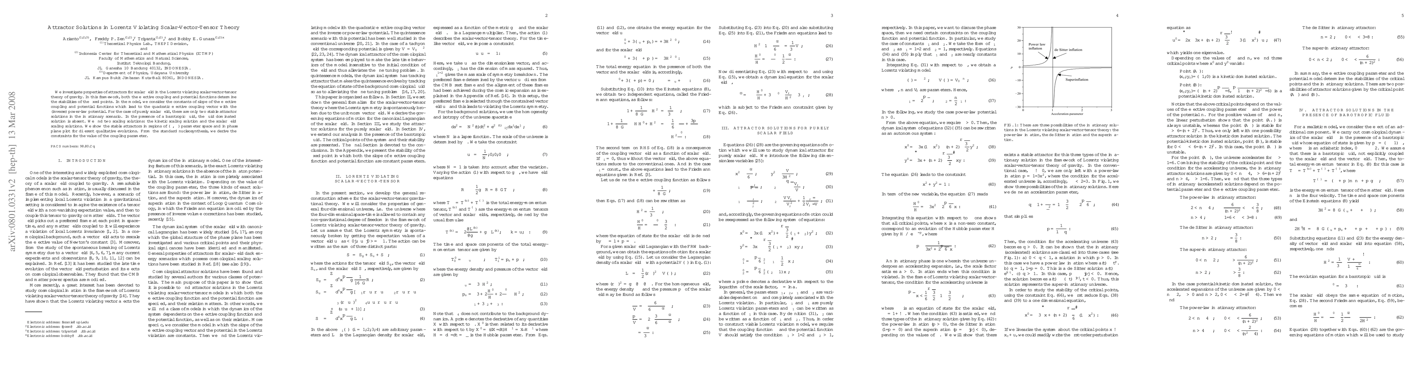 We investigate properties of attractors for scalar field in the Lorentz violating scalar-vector-tensor theory of gravity. In this framework, both the effective coupling and potential functions determine the stabilities of the fixed points. In the model, we consider the constants of slope of the effective coupling and potential functions which lead to the quadratic effective coupling vector with the (inverse) power-law potential. For the case of purely scalar field, there are only two stable attractor solutions in the inflationary scenario. In the presence of a barotropic fluid, the fluid dominated solution is absent. We find two scaling solutions: the kinetic scaling solution and the scalar field scaling solutions. We show the stable attractors in regions of ($\gamma$, $\xi$) parameter space and in phase plane plot for different qualitative evolutions. From the standard nucleosynthesis, we derive the constraints for the value of the coupling parameter.