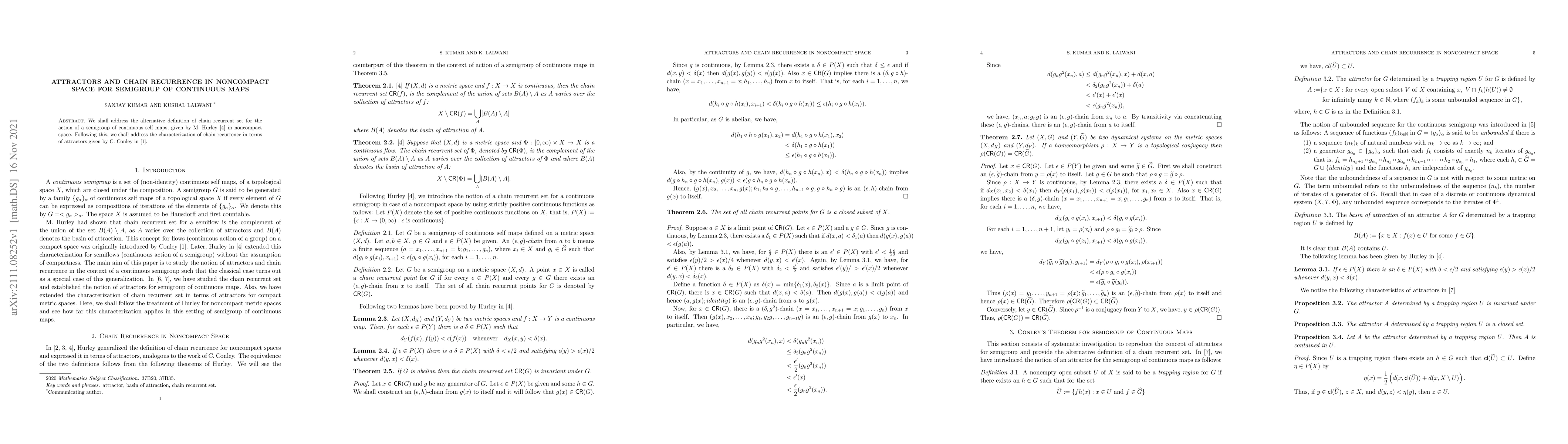 We shall address the alternative definition of chain recurrent set for the action of a semigroup of continuous self maps, given by M. Hurley \cite {mh} in noncompact space. Following this, we shall address the characterization of chain recurrence in terms of attractors given by C. Conley in \cite {conley}.
