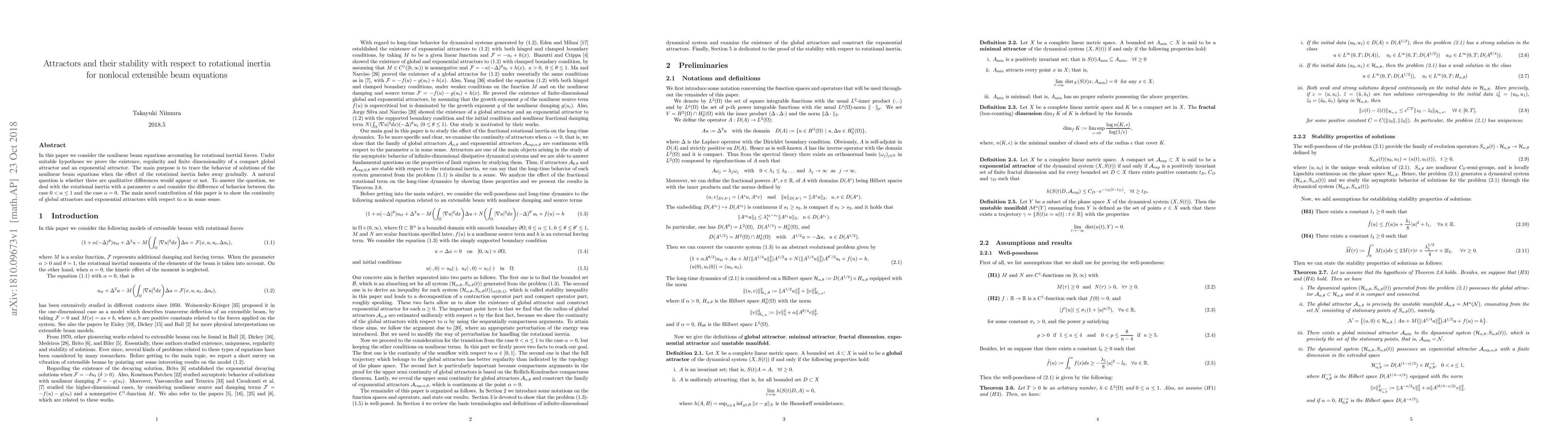 This paper investigates the stability and behavior of solutions for nonlinear beam equations that include rotational inertial forces. It proves the existence of compact and exponential attractors and demonstrates the continuity of these attractors as the rotational inertia parameter approaches zero, highlighting qualitative differences in solution behavior.