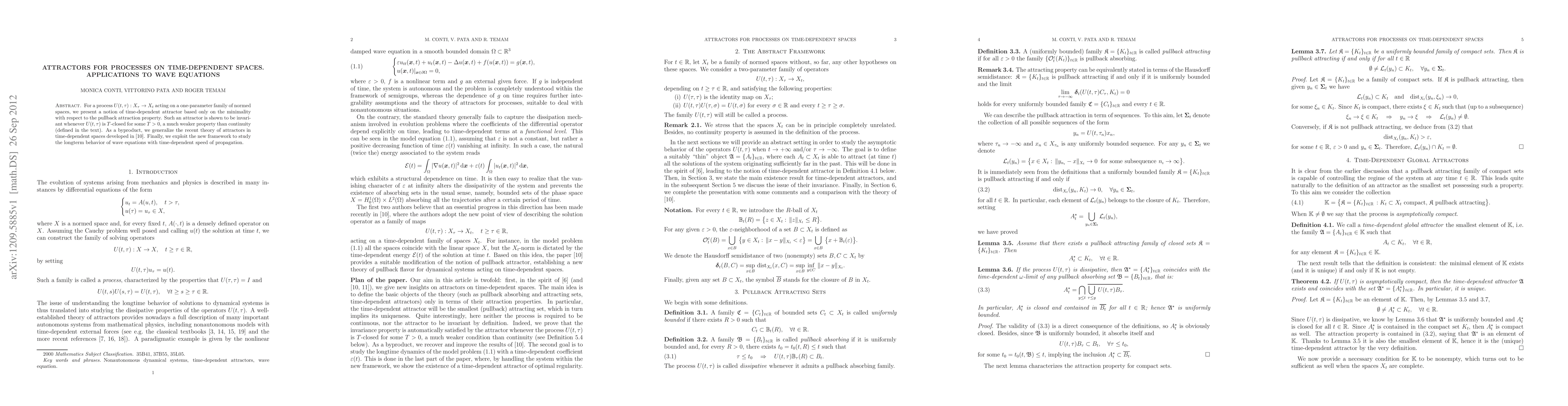 The paper introduces a time-dependent attractor concept based on minimality and pullback attraction for processes on varying normed spaces, proving invariance under weaker T-closed conditions. It extends recent attractor theory and applies the framework to analyze the long-term behavior of wave equations with time-varying propagation speeds.