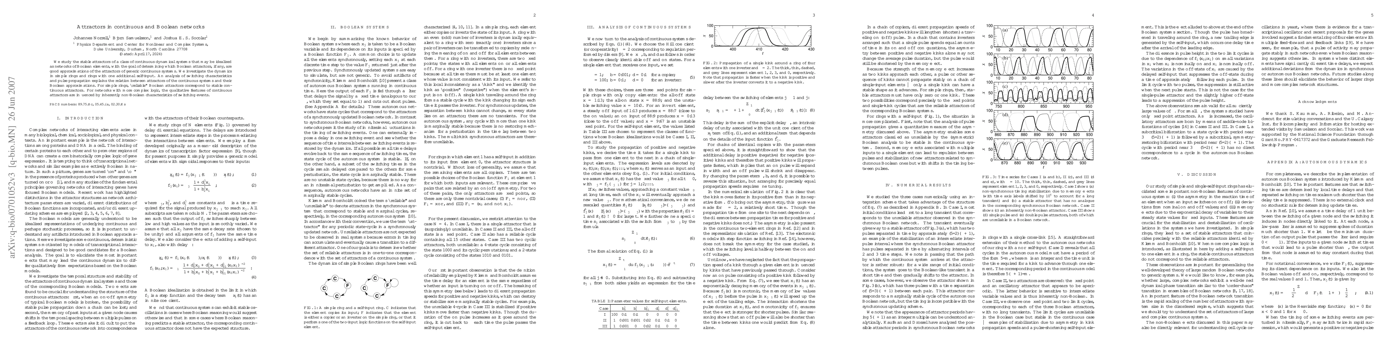 The paper presents an analysis of switching characteristics and pulse propagation to explain the relation between Boolean and continuous attractor properties.