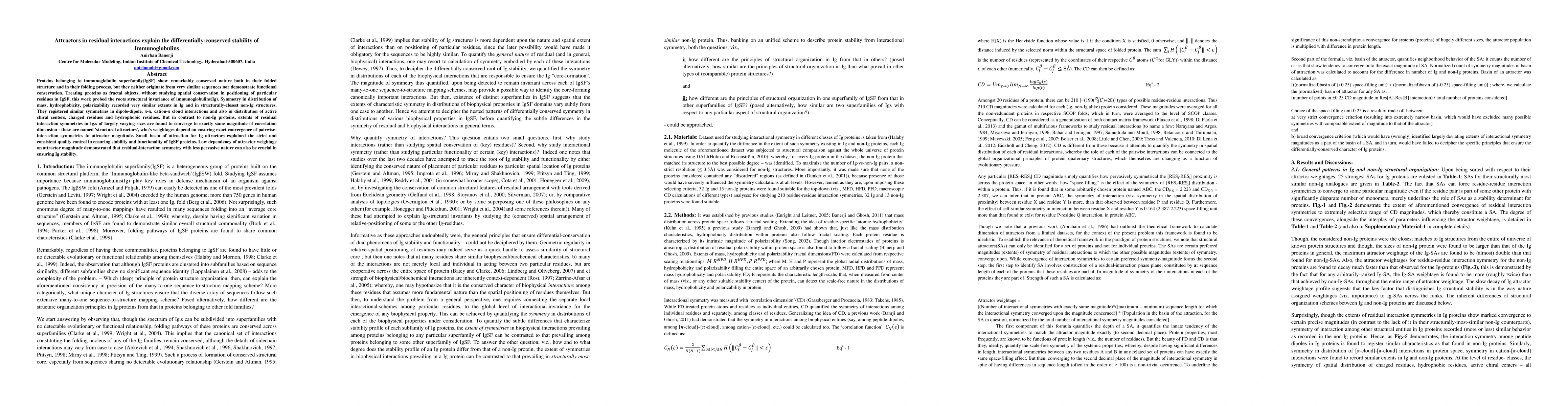 Proteins belonging to immunoglobulin superfamily(IgSF) show remarkably conserved nature both in their folded structure and in their folding process, but they neither originate from very similar sequences nor demonstrate functional conservation. Treating proteins as fractal objects, without studying spatial conservation in positioning of particular residues in IgSF, this work probed the roots structural invariance of immunoglobulins(Ig). Symmetry in distribution of mass, hydrophobicity, polarizability recorded very similar extents in Ig and in structurally-closest non-Ig structures. They registered similar symmetries in dipole-dipole, {\pi}-{\pi}, cation-{\pi} cloud interactions and also in distribution of active chiral centers, charged residues and hydrophobic residues. But in contrast to non-Ig proteins, extents of residual interaction symmetries in Ig.s of largely varying sizes are found to converge to exactly same magnitude of correlation dimension - these are named 'structural attractors', who's weightages depend on ensuring exact convergence of pairwise-interaction symmetries to attractor magnitude. Small basin of attraction for Ig attractors explained the strict and consistent quality control in ensuring stability and functionality of IgSF proteins. Low dependency of attractor weightage on attractor magnitude demonstrated that residual-interaction symmetry with less pervasive nature can also be crucial in ensuring Ig stability.