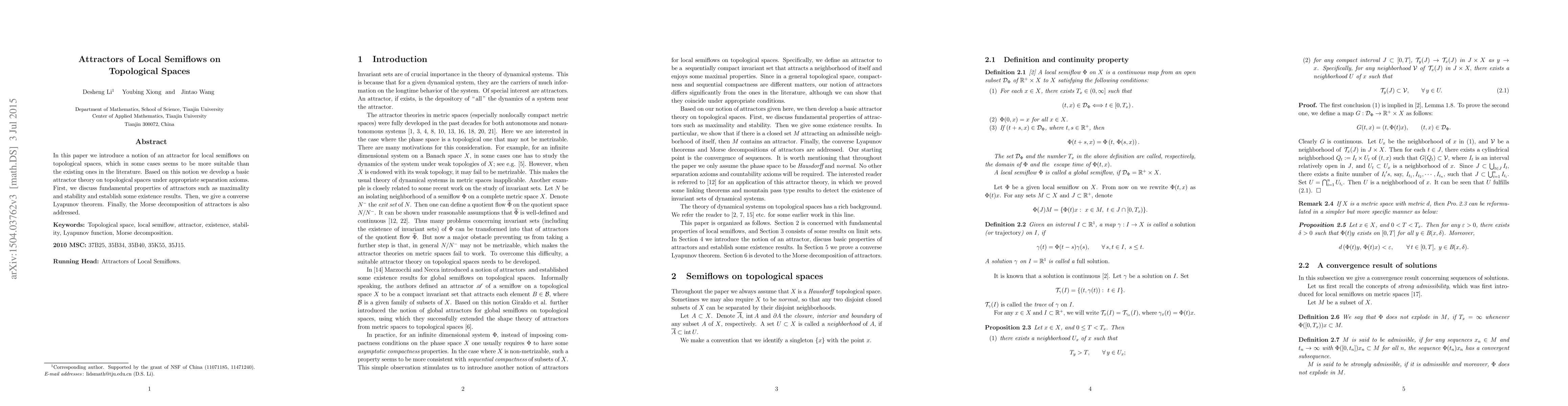 This paper introduces a novel concept of attractors for local semiflows on topological spaces, proving to be more suitable in certain contexts compared to existing theories. It establishes fundamental properties of these attractors, including maximality and stability, and discusses their Morse decomposition.