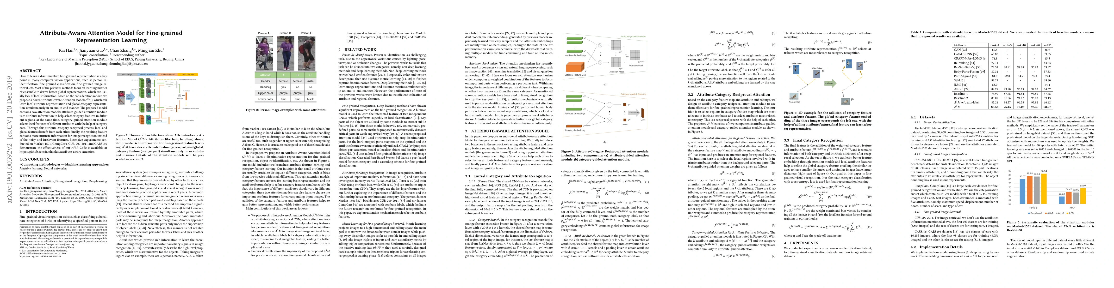 The paper proposes an Attribute-Aware Attention Model ($A^3M$) to learn fine-grained representations by simultaneously capturing local attribute and global category features. The model employs two attention modules to reciprocally enhance local and global feature representations, leading to more discriminative features for tasks like person re-identification and fine-grained classification.