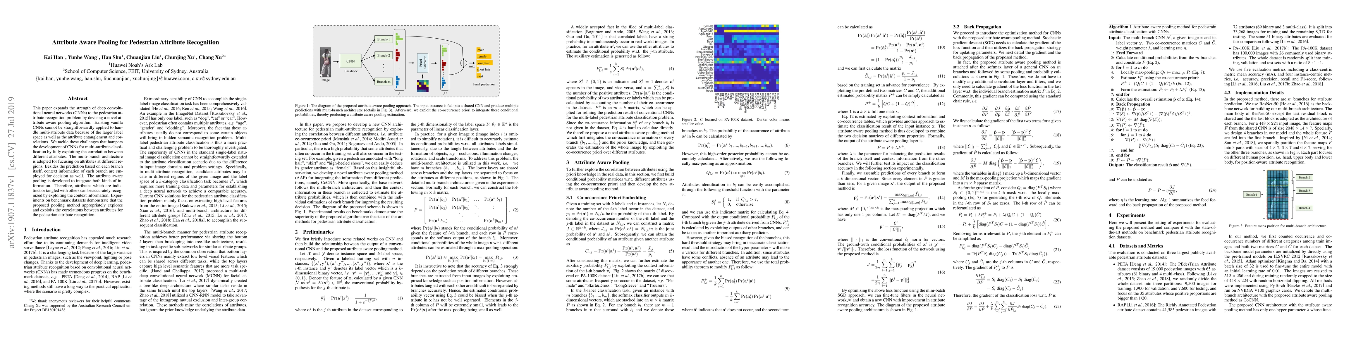 This paper introduces an attribute aware pooling algorithm to enhance deep CNNs for pedestrian attribute recognition, addressing challenges like attribute entanglement and correlations. The multi-branch architecture and context information integration improve recognition of indistinct attributes.