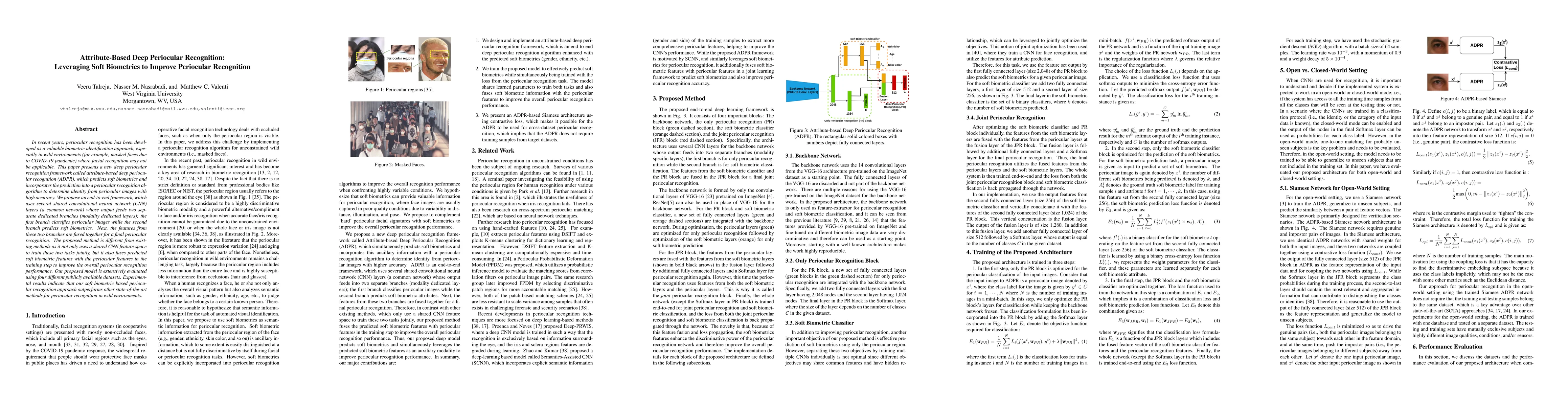 This paper introduces a new deep periocular recognition framework called ADPR that predicts soft biometrics to enhance periocular identification accuracy, especially in challenging environments like masked faces. The proposed end-to-end model uses shared CNN layers and separate branches for periocular classification and soft biometric prediction, fusing these features to improve recognition performance, outperforming existing methods in evaluations.