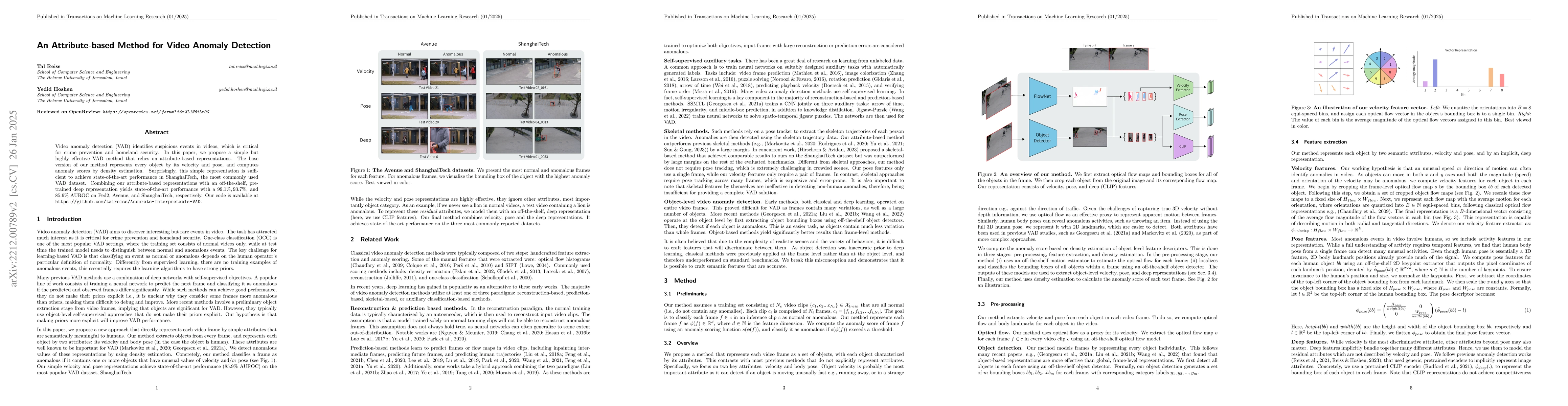 This paper proposes an attribute-based representation method for video anomaly detection that uses object velocity and pose to achieve high accuracy and interpretability. The method achieves state-of-the-art performance on major datasets while maintaining a simple, easy-to-understand approach.