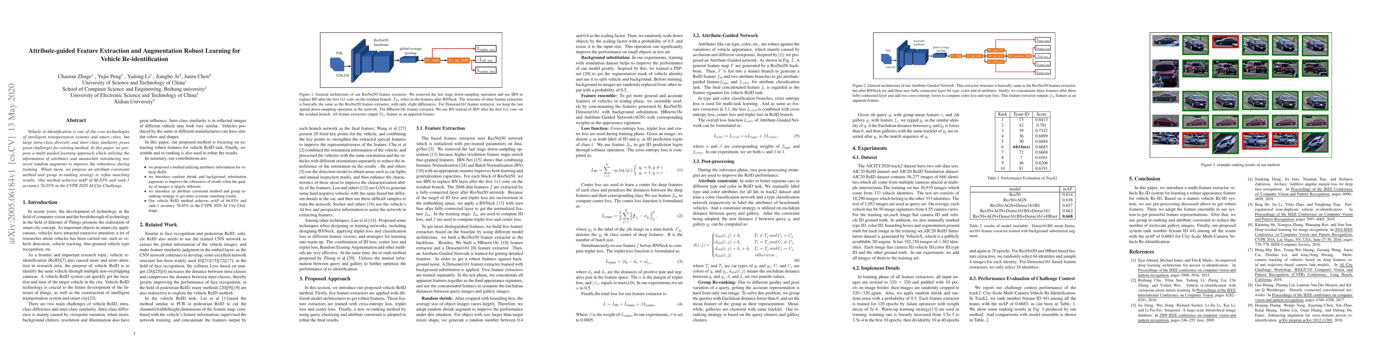 Vehicle re-identification is one of the core technologies of intelligent transportation systems and smart cities, but large intra-class diversity and inter-class similarity poses great challenges for existing method. In this paper, we propose a multi-guided learning approach which utilizing the information of attributes and meanwhile introducing two novel random augments to improve the robustness during training. What's more, we propose an attribute constraint method and group re-ranking strategy to refine matching results. Our method achieves mAP of 66.83% and rank-1 accuracy 76.05% in the CVPR 2020 AI City Challenge.