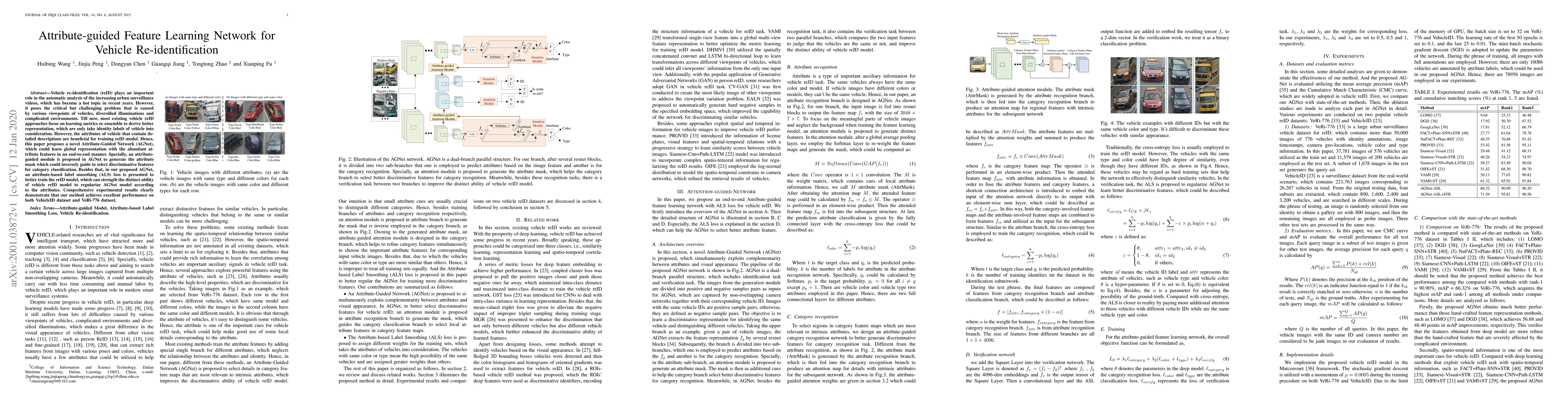 This paper proposes a novel Attribute-Guided Network for vehicle re-identification, which learns global representation with abundant attribute features in an end-to-end manner, achieving excellent performance on two datasets.