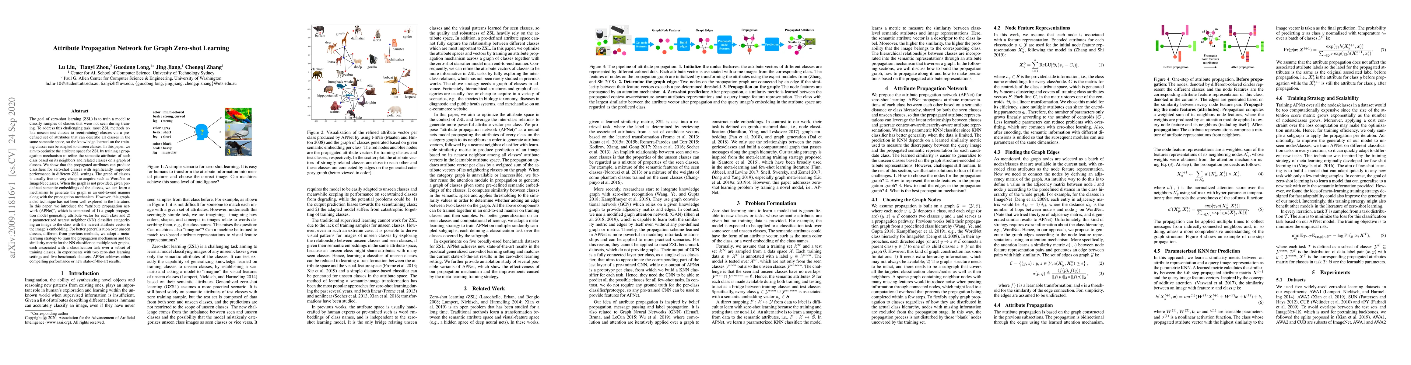 This paper introduces the Attribute Propagation Network (APNet) for graph-based zero-shot learning, optimizing the attribute space by refining class attributes through a graph propagation mechanism. APNet achieves state-of-the-art performance by employing meta-learning to train the propagation model and nearest neighbor classifier on multiple sub-graphs.