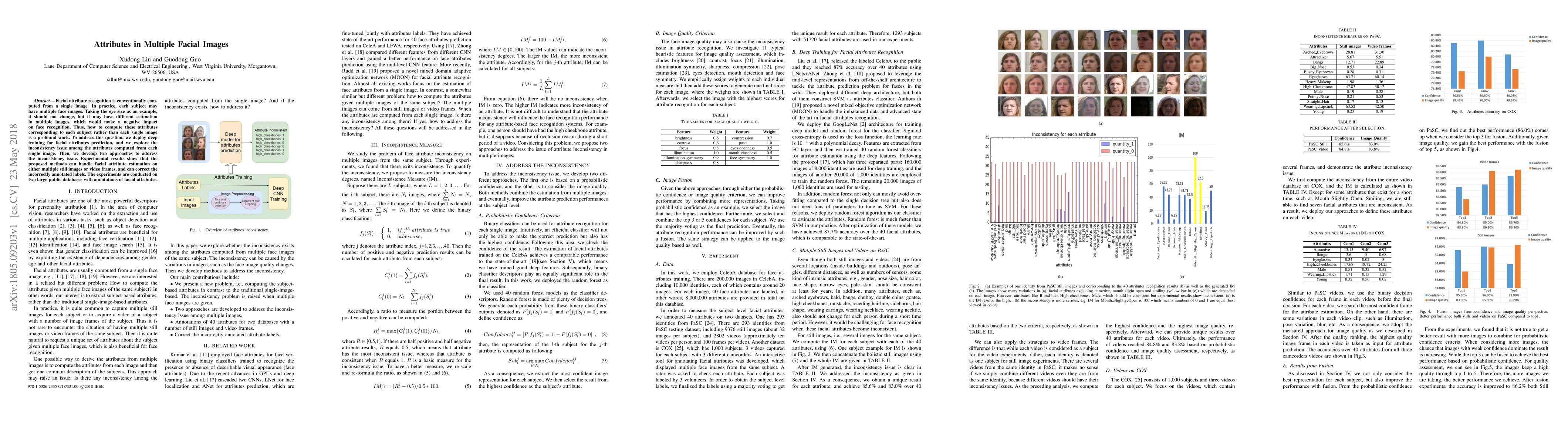 Facial attribute recognition is conventionally computed from a single image. In practice, each subject may have multiple face images. Taking the eye size as an example, it should not change, but it may have different estimation in multiple images, which would make a negative impact on face recognition. Thus, how to compute these attributes corresponding to each subject rather than each single image is a profound work. To address this question, we deploy deep training for facial attributes prediction, and we explore the inconsistency issue among the attributes computed from each single image. Then, we develop two approaches to address the inconsistency issue. Experimental results show that the proposed methods can handle facial attribute estimation on either multiple still images or video frames, and can correct the incorrectly annotated labels. The experiments are conducted on two large public databases with annotations of facial attributes.