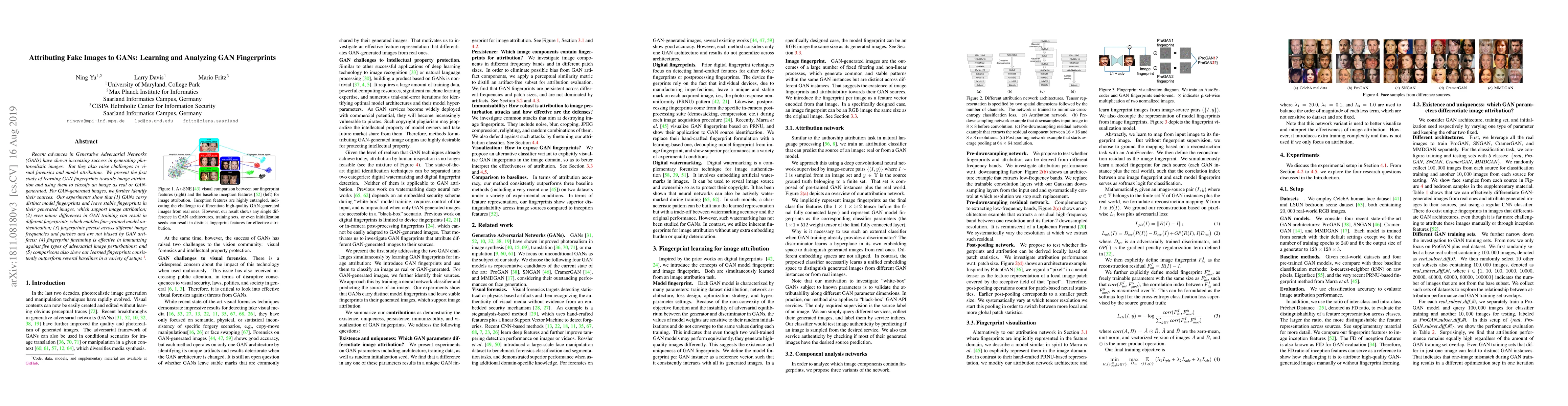 This paper investigates the concept of GAN fingerprints to attribute and classify images as real or GAN-generated, demonstrating that GAN-generated images carry distinct, stable fingerprints that enable fine-grained model authentication and are robust against adversarial perturbations. The study shows that minor training differences lead to different fingerprints and that these fingerprints persist across various image frequencies and patches.