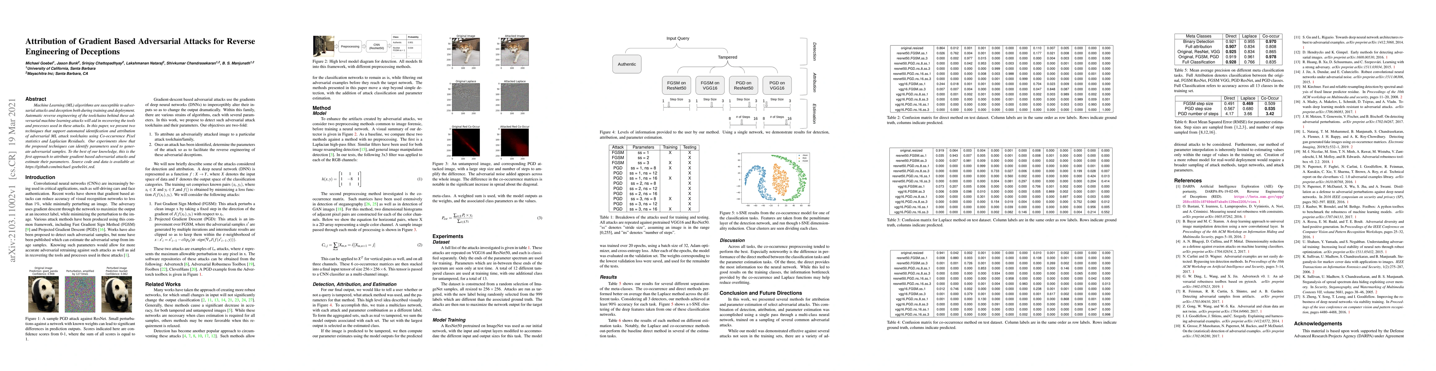 This paper introduces two techniques for automatically identifying and attributing adversarial machine learning attack toolchains using Co-occurrence Pixel statistics and Laplacian Residuals. The methods can identify parameters used to generate adversarial samples, marking the first approach to attribute gradient based adversarial attacks and estimate their parameters.