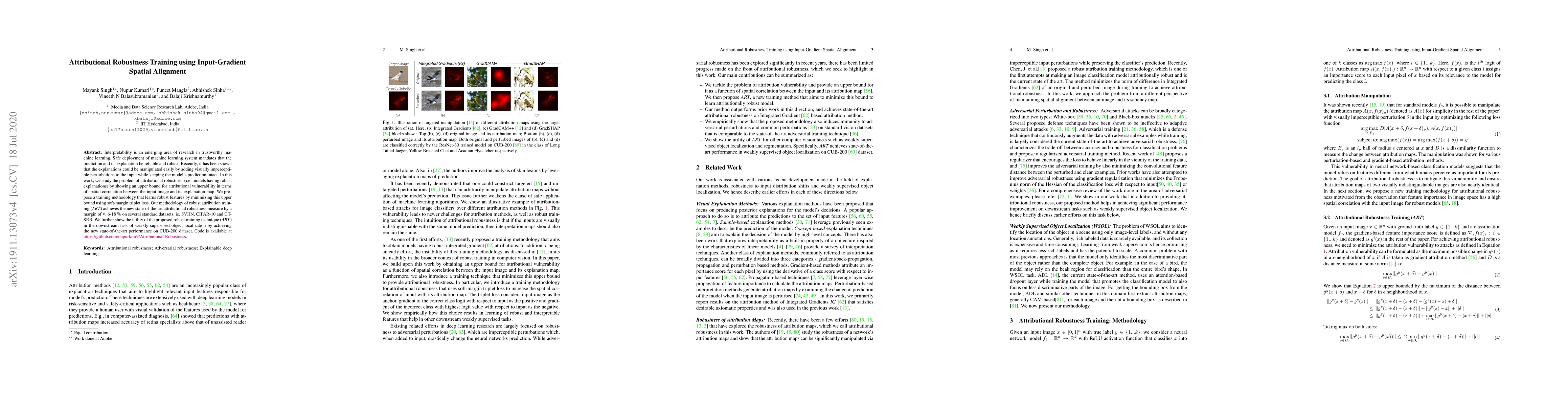Interpretability is an emerging area of research in trustworthy machine learning. Safe deployment of machine learning system mandates that the prediction and its explanation be reliable and robust. Recently, it has been shown that the explanations could be manipulated easily by adding visually imperceptible perturbations to the input while keeping the model's prediction intact. In this work, we study the problem of attributional robustness (i.e. models having robust explanations) by showing an upper bound for attributional vulnerability in terms of spatial correlation between the input image and its explanation map. We propose a training methodology that learns robust features by minimizing this upper bound using soft-margin triplet loss. Our methodology of robust attribution training (\textit{ART}) achieves the new state-of-the-art attributional robustness measure by a margin of $\approx$ 6-18 $\%$ on several standard datasets, ie. SVHN, CIFAR-10 and GTSRB. We further show the utility of the proposed robust training technique (\textit{ART}) in the downstream task of weakly supervised object localization by achieving the new state-of-the-art performance on CUB-200 dataset.