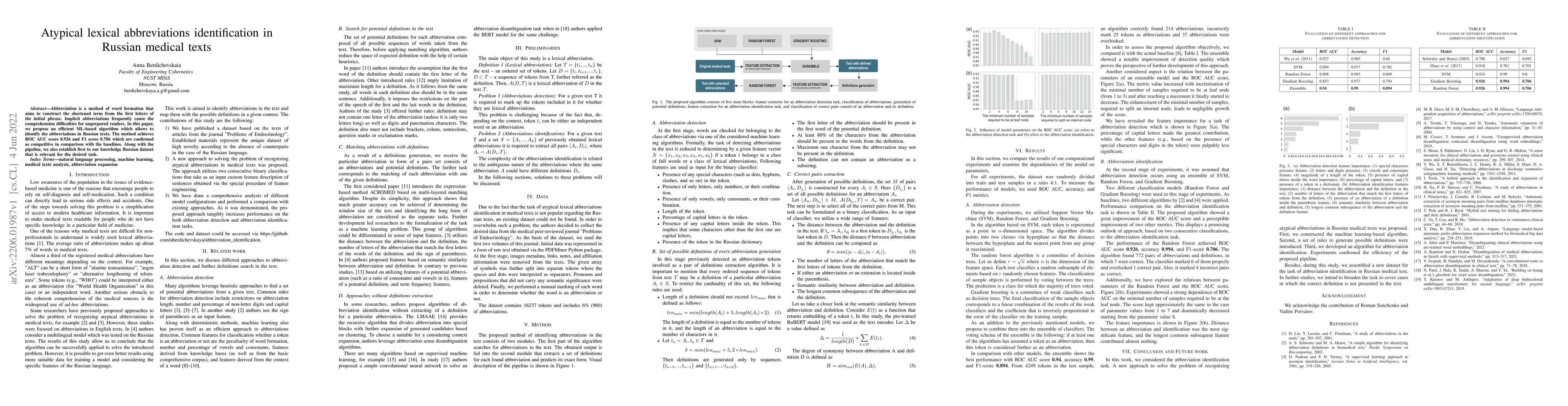 Researchers developed an efficient machine learning algorithm to identify abbreviations in Russian medical texts with high accuracy, achieving competitive results and creating a new dataset for the task.