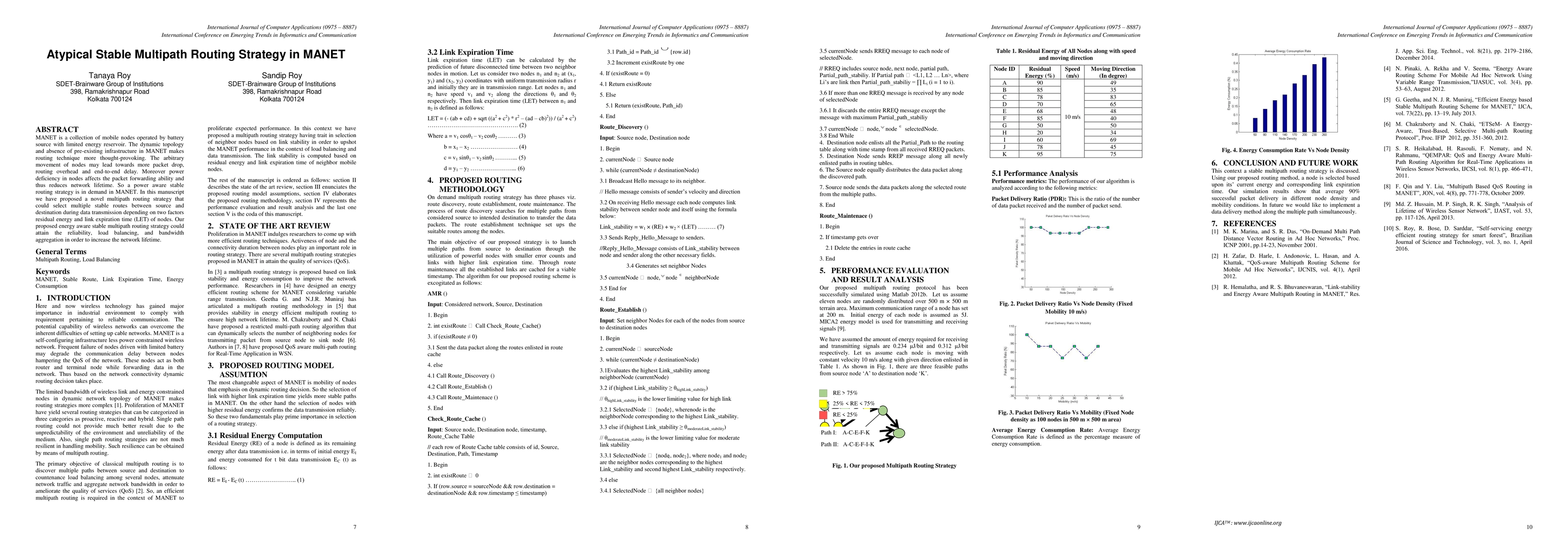 This paper proposes a novel multipath routing strategy for MANETs that selects multiple stable routes based on residual energy and link expiration time to enhance reliability, balance load, and aggregate bandwidth, thereby extending network lifetime. The strategy aims to mitigate packet drops, routing overhead, and delays in dynamic, infrastructure-less networks.