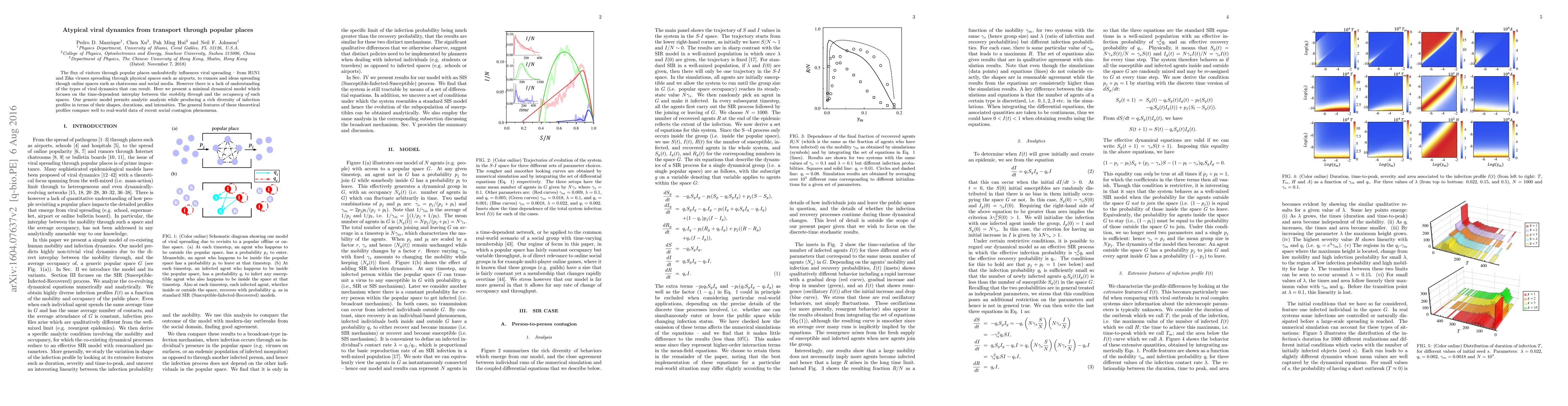 The flux of visitors through popular places undoubtedly influences viral spreading -- from H1N1 and Zika viruses spreading through physical spaces such as airports, to rumors and ideas spreading though online spaces such as chatrooms and social media. However there is a lack of understanding of the types of viral dynamics that can result. Here we present a minimal dynamical model which focuses on the time-dependent interplay between the {\em mobility through} and the {\em occupancy of} such spaces. Our generic model permits analytic analysis while producing a rich diversity of infection profiles in terms of their shapes, durations, and intensities. The general features of these theoretical profiles compare well to real-world data of recent social contagion phenomena.