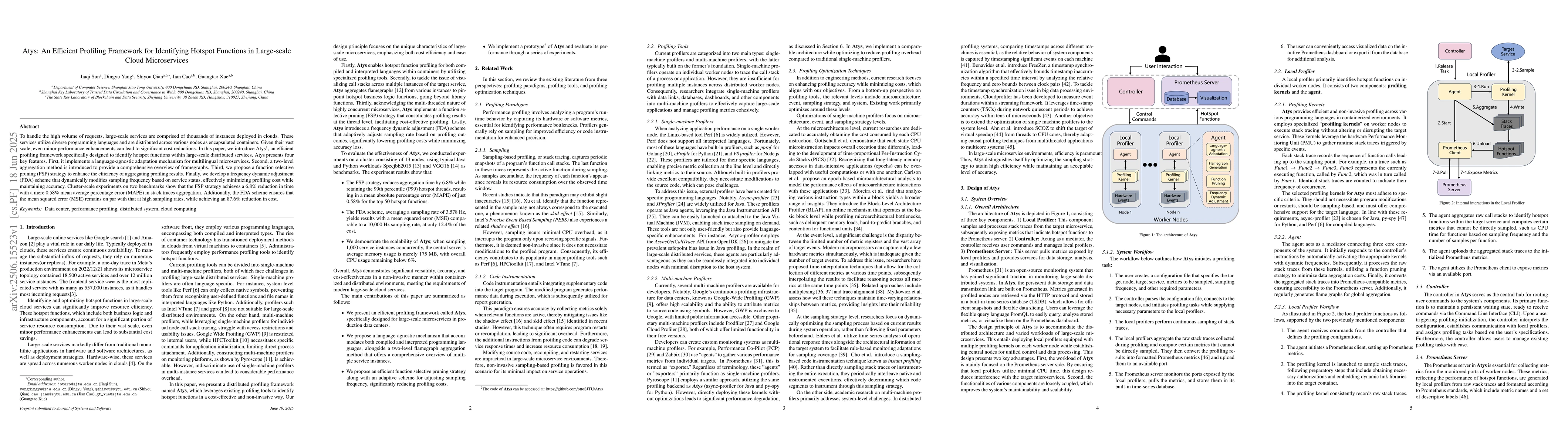 To handle the high volume of requests, large-scale services are comprised of thousands of instances deployed in clouds. These services utilize diverse programming languages and are distributed across various nodes as encapsulated containers. Given their vast scale, even minor performance enhancements can lead to significant cost reductions. In this paper, we introduce Atys1, an efficient profiling framework specifically designed to identify hotspot functions within large-scale distributed services. Atys presents four key features. First, it implements a language-agnostic adaptation mechanism for multilingual microservices. Second, a two-level aggregation method is introduced to provide a comprehensive overview of flamegraphs. Third, we propose a function selective pruning (FSP) strategy to enhance the efficiency of aggregating profiling results. Finally, we develop a frequency dynamic adjustment (FDA) scheme that dynamically modifies sampling frequency based on service status, effectively minimizing profiling cost while maintaining accuracy. Cluster-scale experiments on two benchmarks show that the FSP strategy achieves a 6.8% reduction in time with a mere 0.58% mean average percentage error (MAPE) in stack traces aggregation. Additionally, the FDA scheme ensures that the mean squared error (MSE) remains on par with that at high sampling rates, while achieving an 87.6% reduction in cost.
