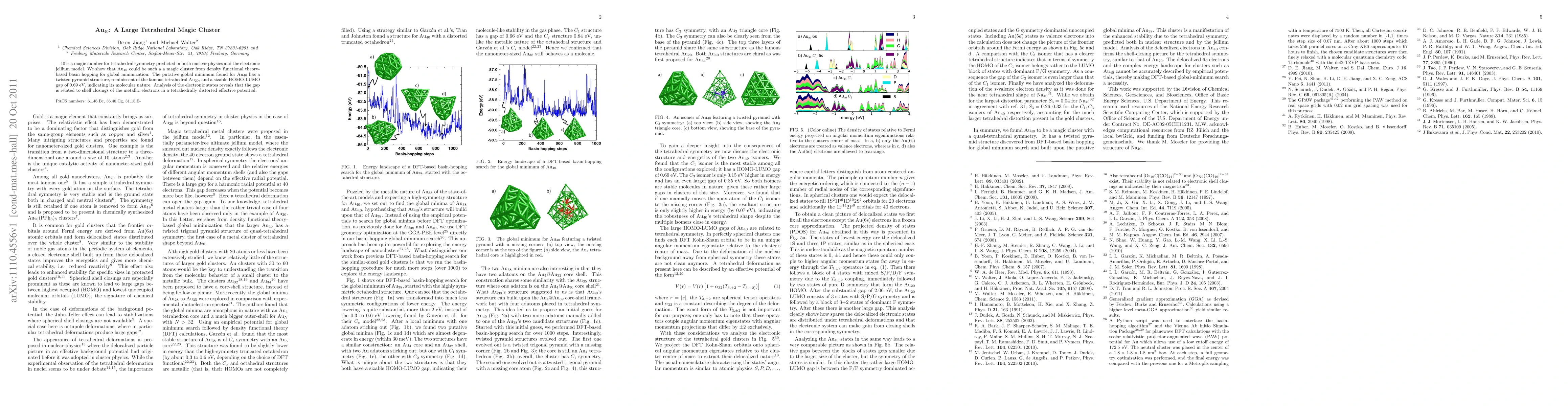 Researchers found a stable gold cluster with 40 atoms in a twisted pyramid structure using computational methods, indicating it could have unique electronic properties like a larger version of the Au20 cluster. The discovery suggests that Au40 is a 'magic number' for tetrahedral symmetry.