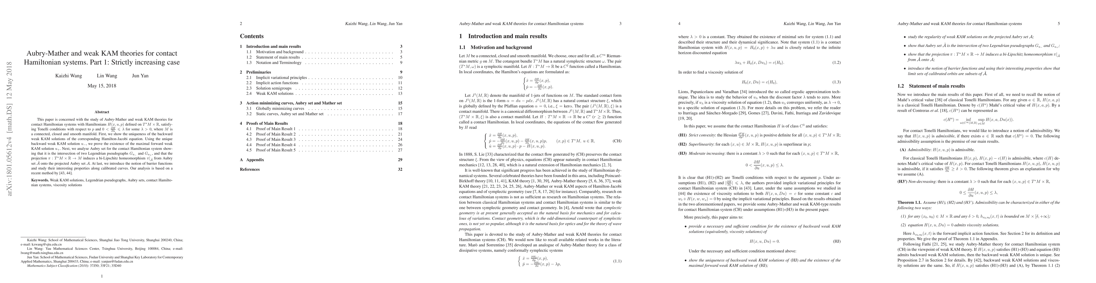 This paper explores Aubry-Mather and weak KAM theories for contact Hamiltonian systems with strictly increasing Hamiltonians, proving the uniqueness of backward weak KAM solutions and the existence of maximal forward solutions. It also analyzes the Aubry set and demonstrates its bi-Lipschitz homeomorphism property, concluding with a study of barrier functions and their properties.